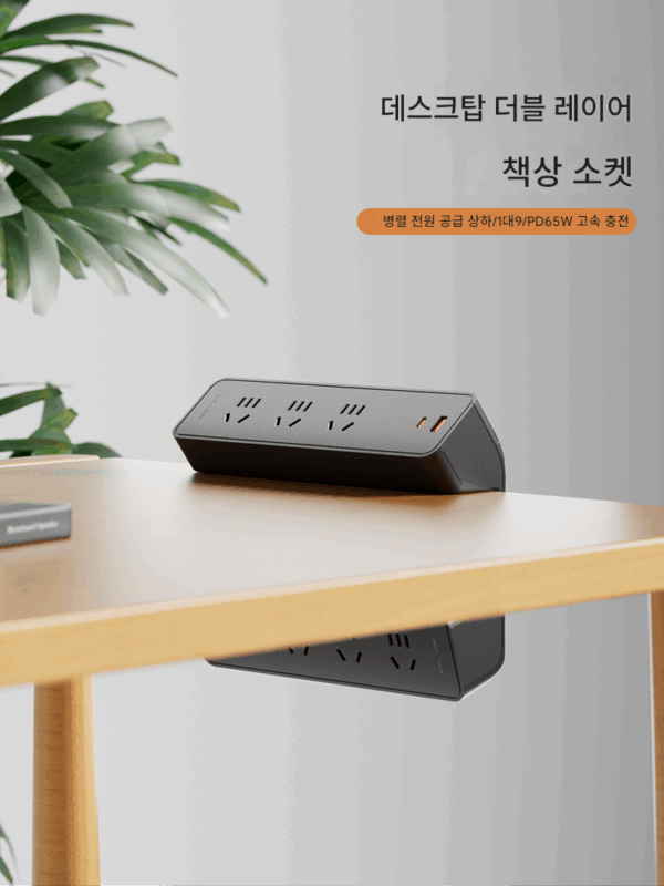 조예 준웨이 책상 테이블탑 더블 레이어 접착 클램프 데스크 소켓 펀칭 없음 PD65W 고속 충전 전원 스트립