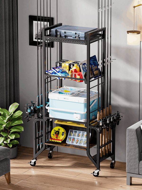 낚시 장비 진열대 바닥 선반 이동식 카트 선반 낚시 상자 낚시 의자 다기능 낚싯대 진열대