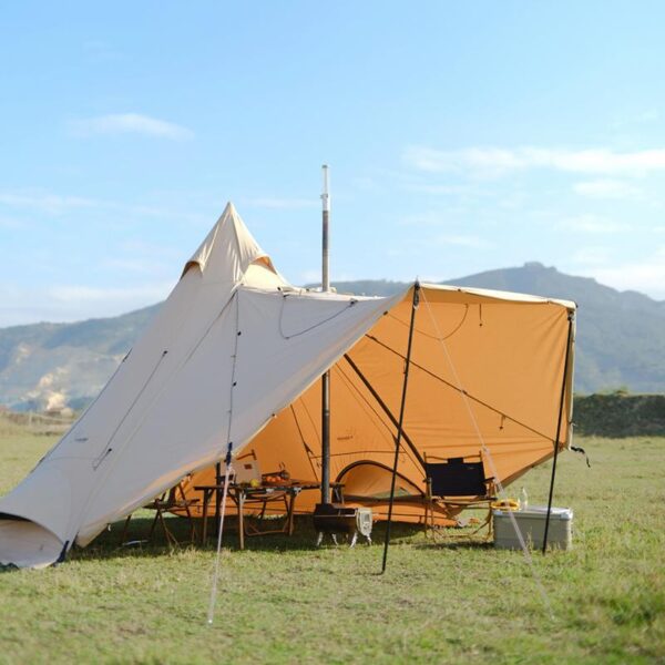 가격 범위: 51,000원~99,100원비달리 멀티플레임 텐트 4미터 피라미드 텐트 인도면 천 확장 가능 로비 나무 난로 캠핑 텐트