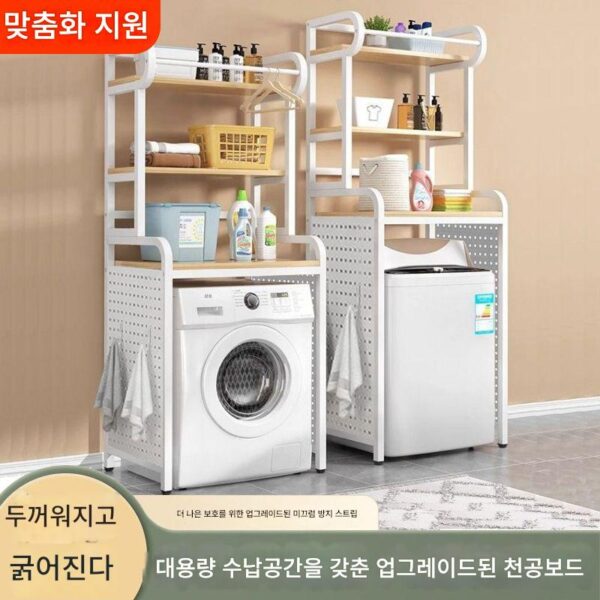 드럼 위에 세탁기 선반을 설치하여 T자형 캐비닛을 차단하고 발코니에 변기 세면대 선반을 쌓아서 수납할 수 있는 선반을 설치했습니다.