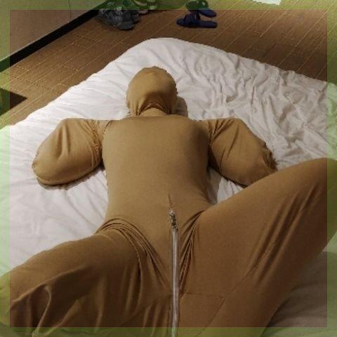 COS 손과 발은 반으로 접혀 있고 피부색이 두껍게 처리된 솔질된 뒷면 지퍼가 앞 가랑이를 감싸고 있으며 강아지 옷은 젠타이 퍼포먼스 디스플레이입니다.