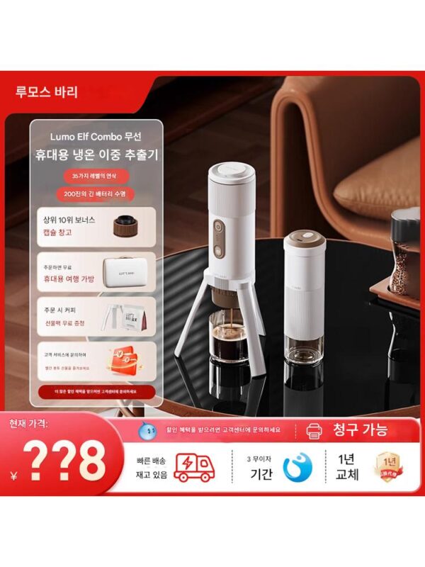 Lumo 휴대용 엘프 커피 머신 가정용 소형 이탈리아산 반자동 야외 여행용 전기 원두 분쇄기 포함