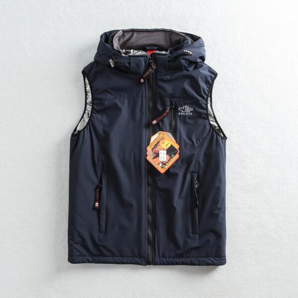 외국 무역 오리지널 테일 상품 남성 겨울 야외 두꺼운 코튼 조끼 후드 방풍 따뜻한 다중 포켓 작업복 코튼 코트