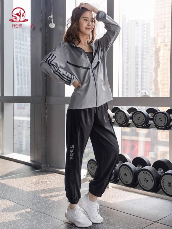 KAYANTY 체육관 러닝 스포츠 슈트 여성 가을 겨울 야외 아침 러닝 슬림 요가복 느슨한 속건성 의류