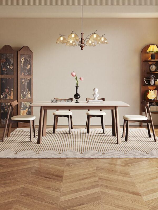 가격 범위: 804,000원~1,860,400원오리지널 우드 크림 스타일 퓨어 화이트 록 보드 다이닝 테이블과 의자 조합 노르딕 일본 스타일 소형 가정용 애쉬 솔리드 우드 다이닝 테이블