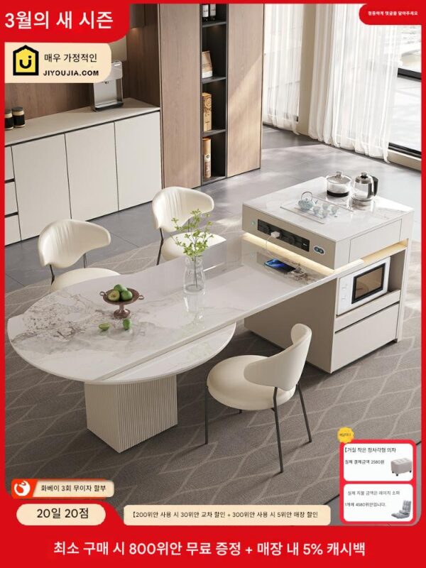 가격 범위: 236,000원~1,666,000원전자동 솔리드 우드 록 플레이트 아일랜드 테이블 식탁 통합 크림 스타일 텔레스코픽 접이식 스마트 전기 음성 주방 티바
