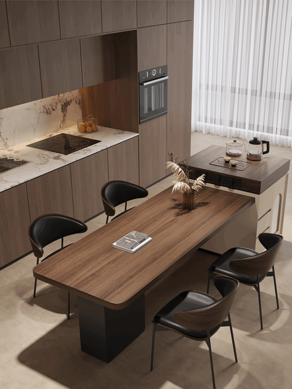 가격 범위: 1,014,700원~2,325,100원중세 스타일 검은 호두 나무 무늬 록 플레이트 섬 테이블 식탁 통합형 접이식 다기능 대형 아파트 고급 섬 테이블