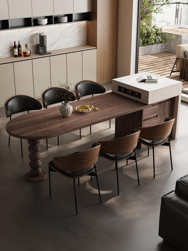 이탈리아식 식탁 섬 통합 가정용 소형 아파트 접이식 레트로 아크 다기능 호두 원목 섬