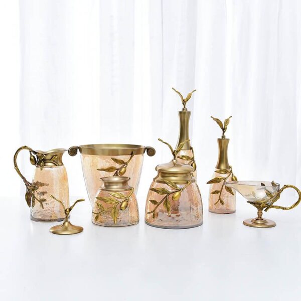 수입 유럽 고급 라이트 럭셔리 골드 및 실버 구리 가지와 잎 유리 보관 항아리 장식품 모델 룸 거실 침실 장식