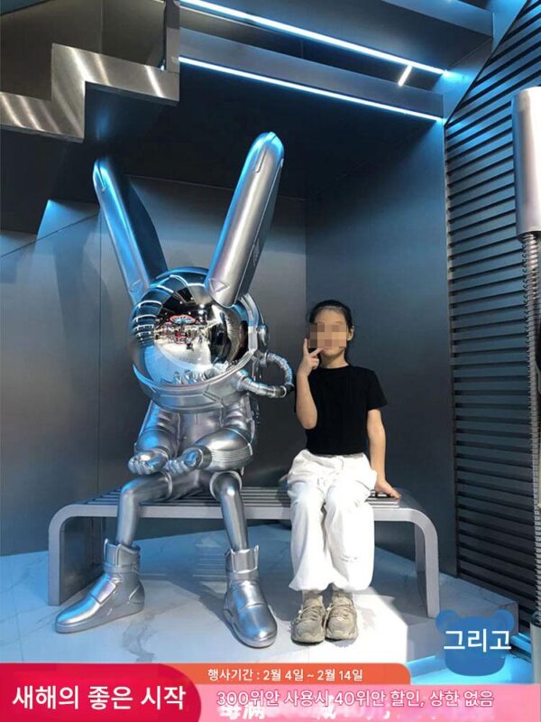 2024 인터넷 셀러브리티 로비 전기 도금 달빛 큰 토끼 장식품 바닥 집 거실 호텔 장식 장식 조각