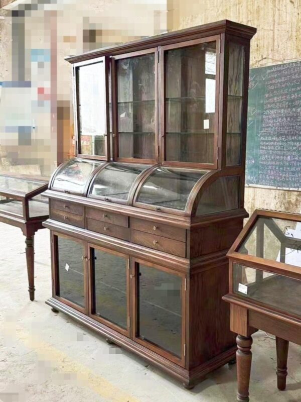 가격 범위: 8,700원~17,800원영국 복고풍 견고한 목재 보석 디스플레이 캐비닛 앤틱 옥 투명 디스플레이 보석 곡선 유리 높은 캐비닛 사용자 정의