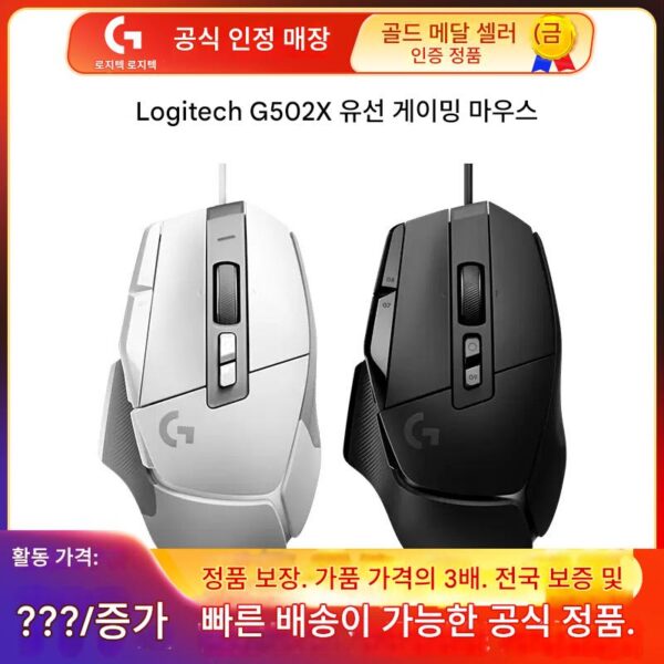Logitech G502X 유선 게이밍 마우스 기계식 e스포츠 RGB 조명 데스크톱 컴퓨터 G502HERO 개봉