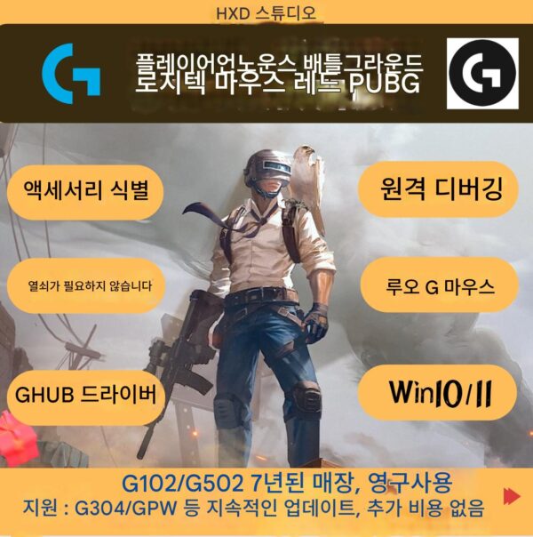 플레이어언노운스 배틀그라운드 PUBG 로지텍 G 시리즈 G502 매크로 마우스 붉은 닭 먹기 지원 GPW 마우스 HERO102304 등