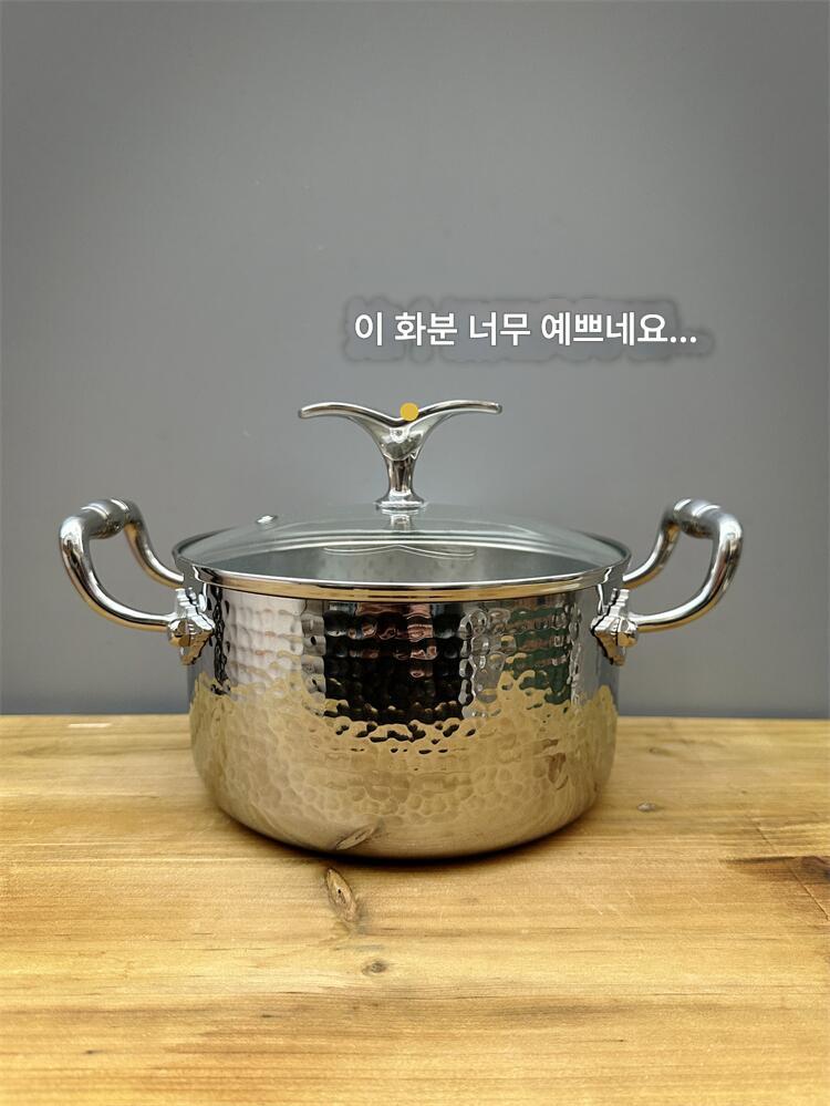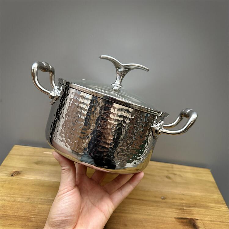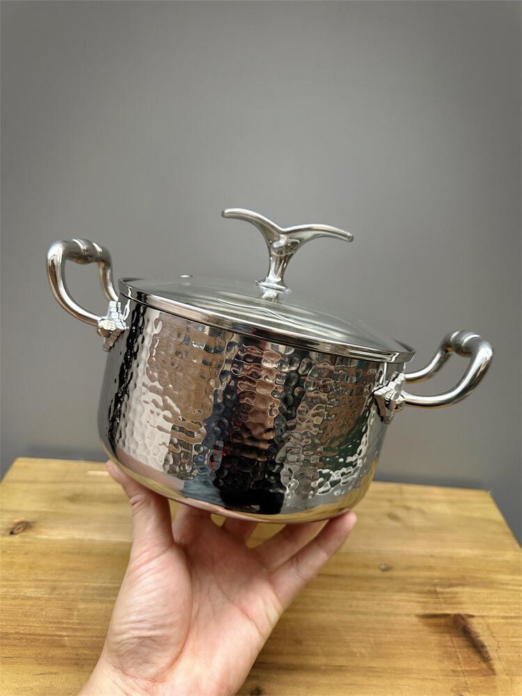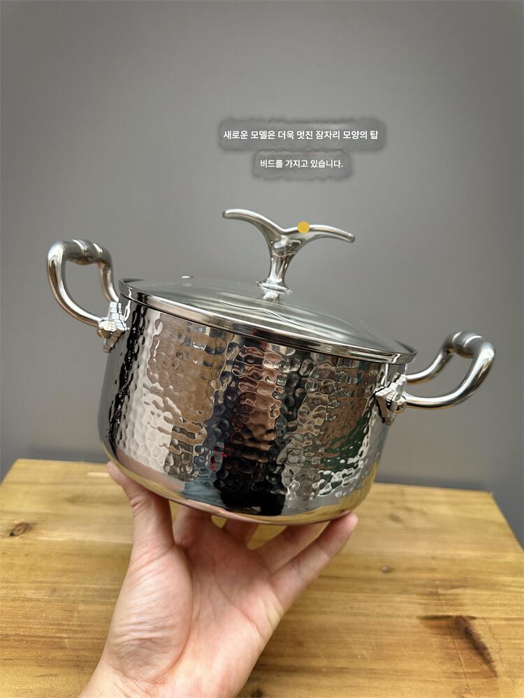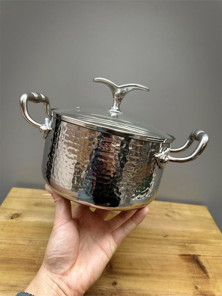 가게 주인이 직접 만든 고급 두꺼워진 304 스테인리스 스틸 망치 무늬 국 냄비 가정용 코코넛 닭 냄비 유도 조리기 단일