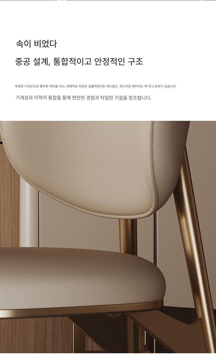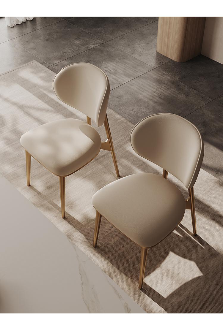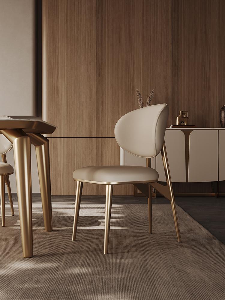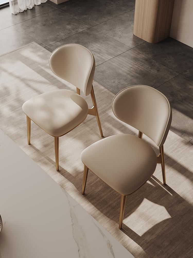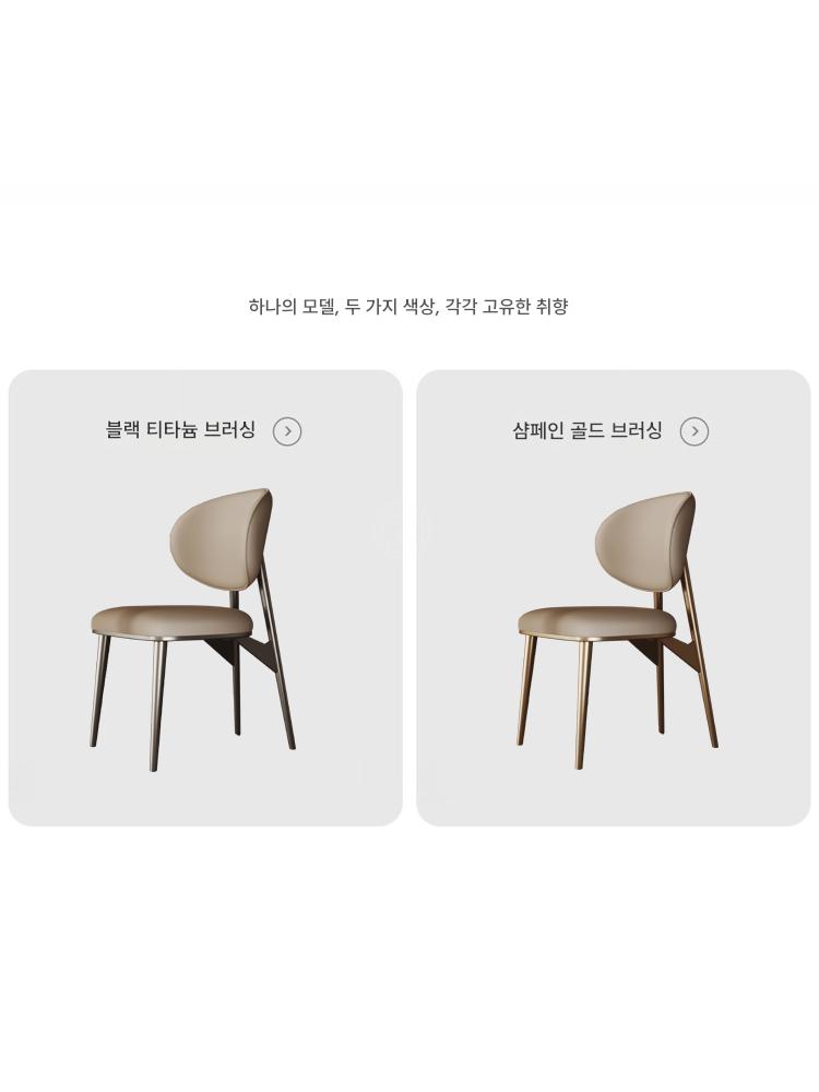 가벼운 고급 식탁의자 정품 가죽 상판 소가죽 가정용 소형 등받이 의자 고급 스테인리스 스틸 모던 심플 의자