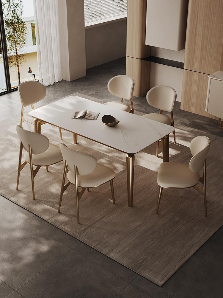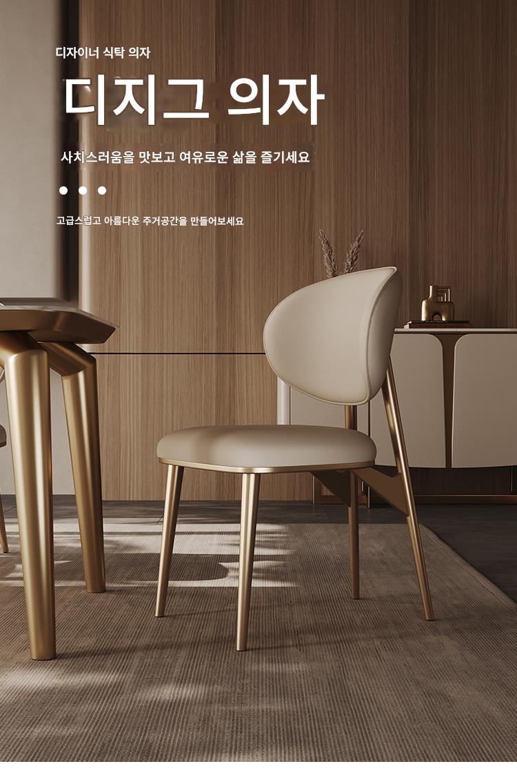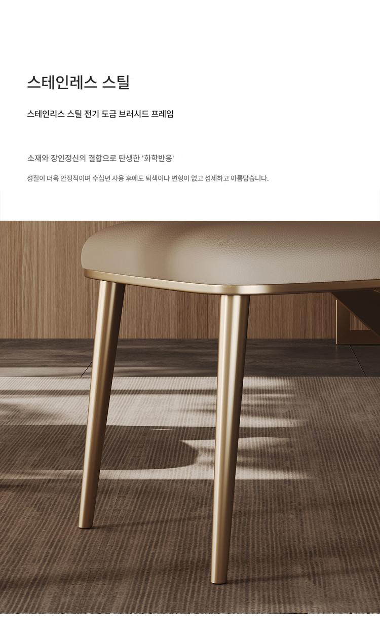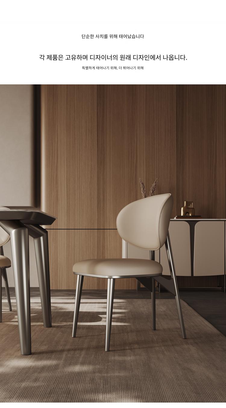 가벼운 고급 식탁의자 정품 가죽 상판 소가죽 가정용 소형 등받이 의자 고급 스테인리스 스틸 모던 심플 의자