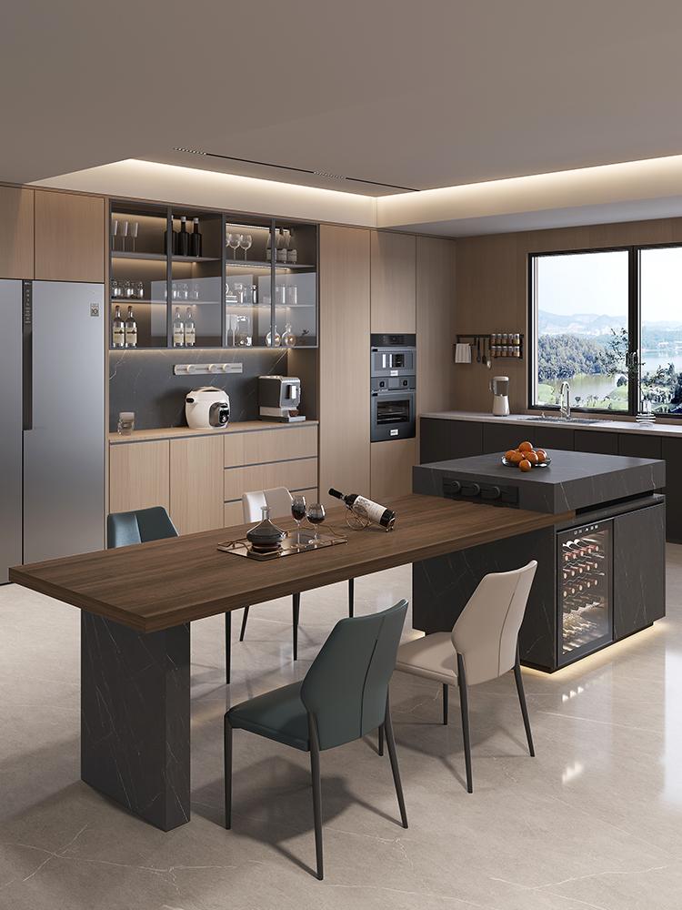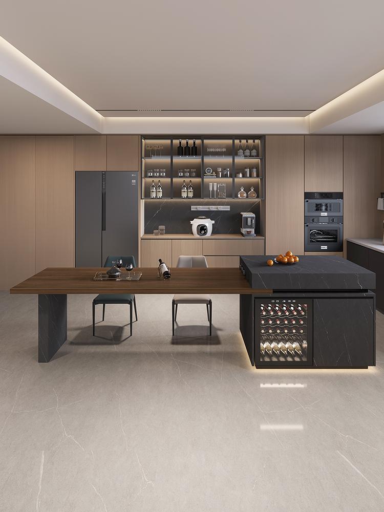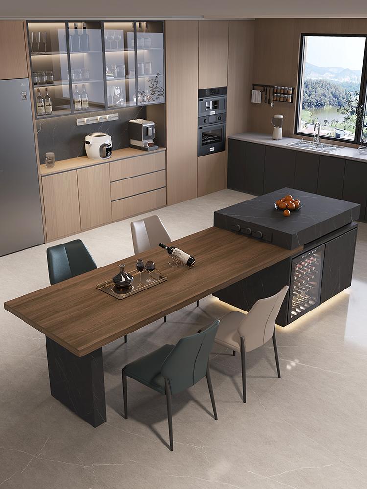 가볍고 고급스러운 록 플레이트 섬 식탁 역식 식탁 섬 통합 디자인 서랍 수납 오픈 키친 소파 가이드 테이블