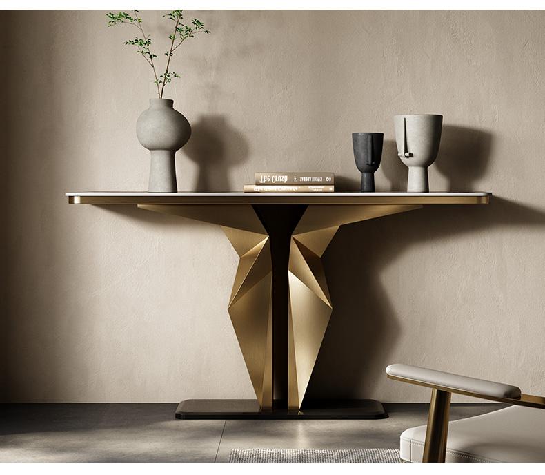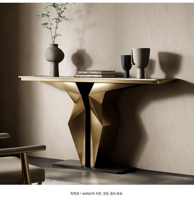 가볍고 고급스러운 스타일의 현관 테이블 빌라 거실 스테인리스 스틸 통합 벽면 테이블 현대식 현관 록 플레이트 현관 테이블