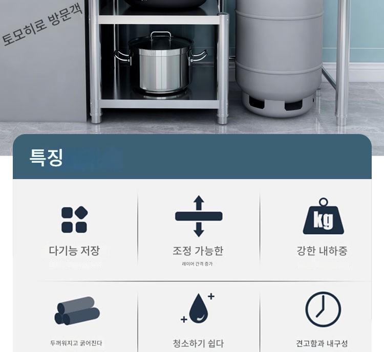 가스레인지 랙 3단 조리대 스테인리스 스틸 주방 액화가스 랙 두꺼워진 수납 조리작업 주방테이블