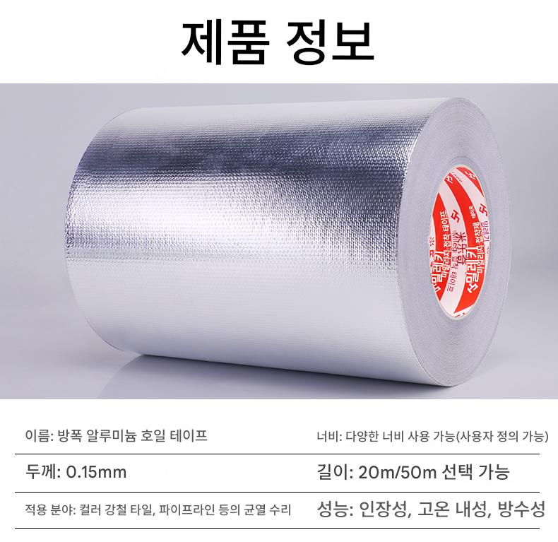 가스온수기 배기관 밀봉 고온용 알루미늄 호일 테이프 태양열 파이프 자외선 차단 및 누수 방지 포장 테이프