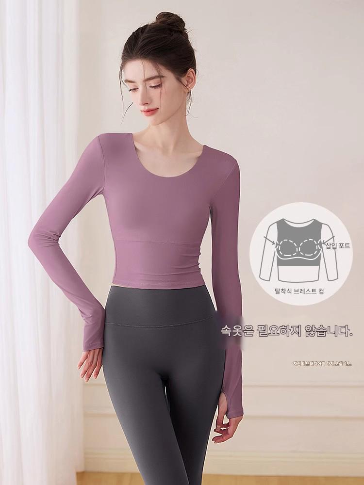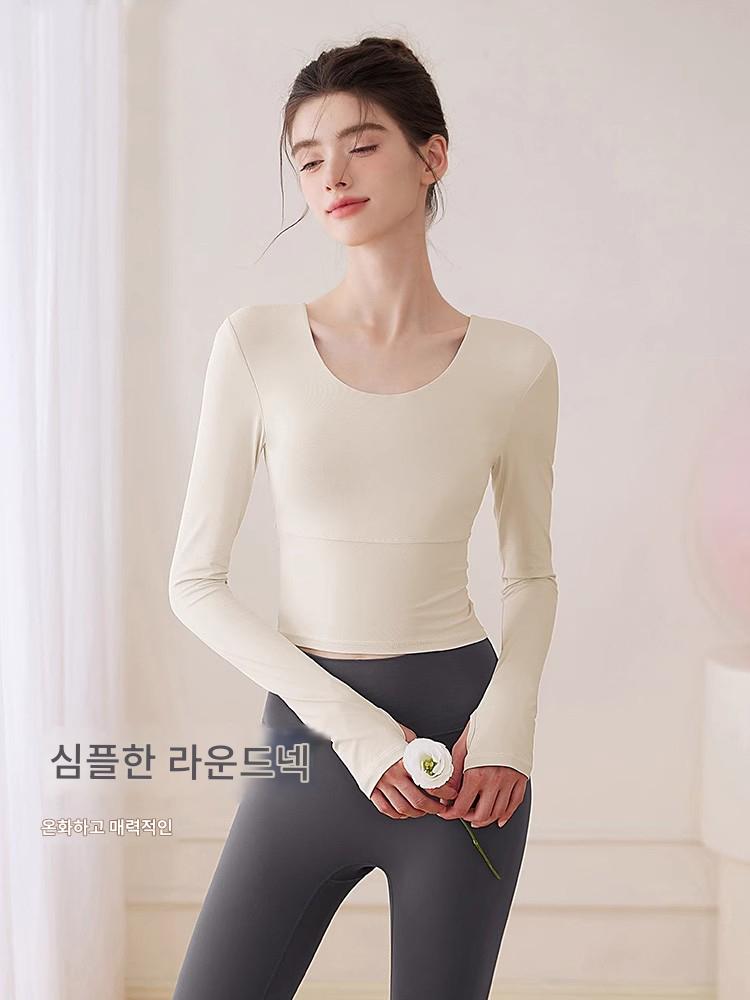 가을과 겨울 여성용 KAYANTY 요가복 상의, 긴팔 피트니스 슈트, 필라테스 트레이닝, 가슴 패드가 있는 스포츠
