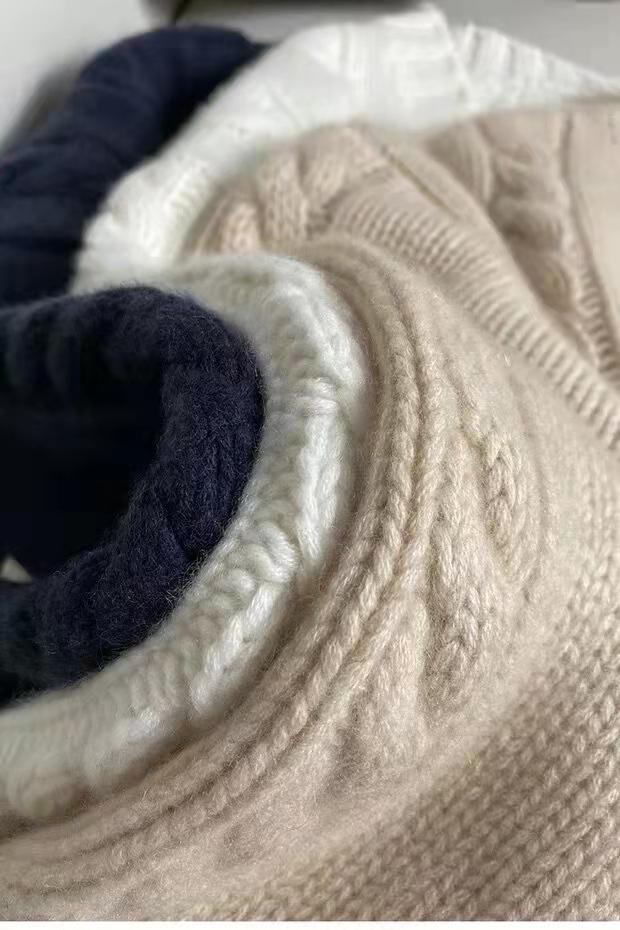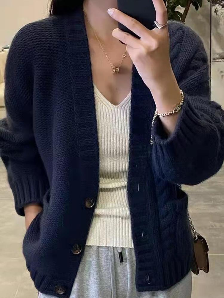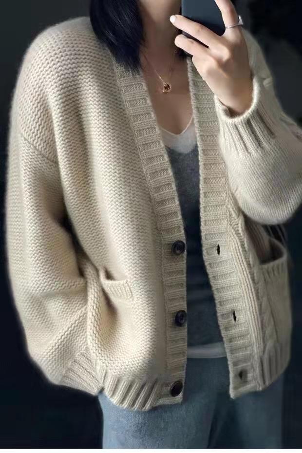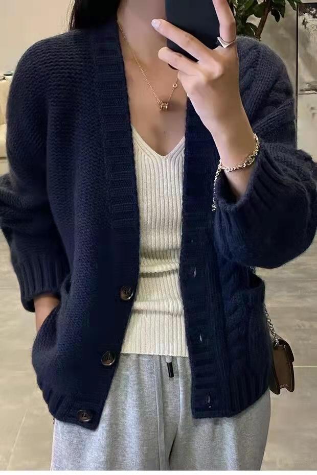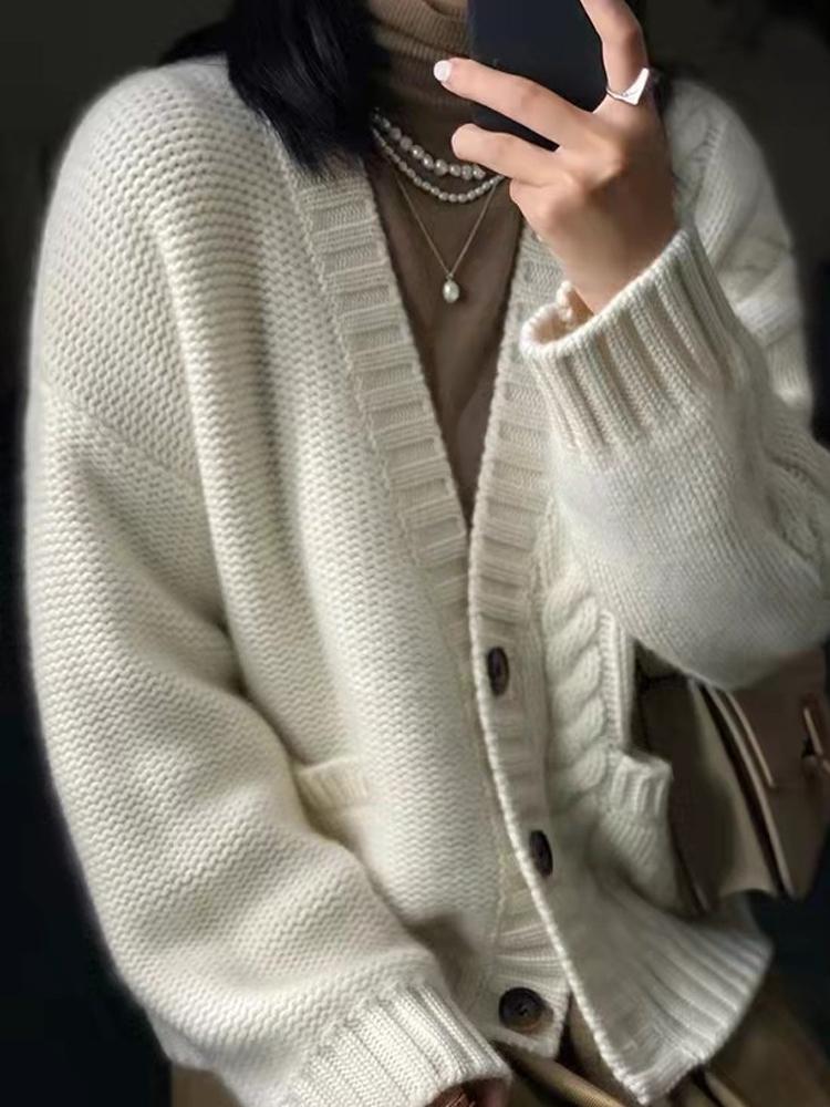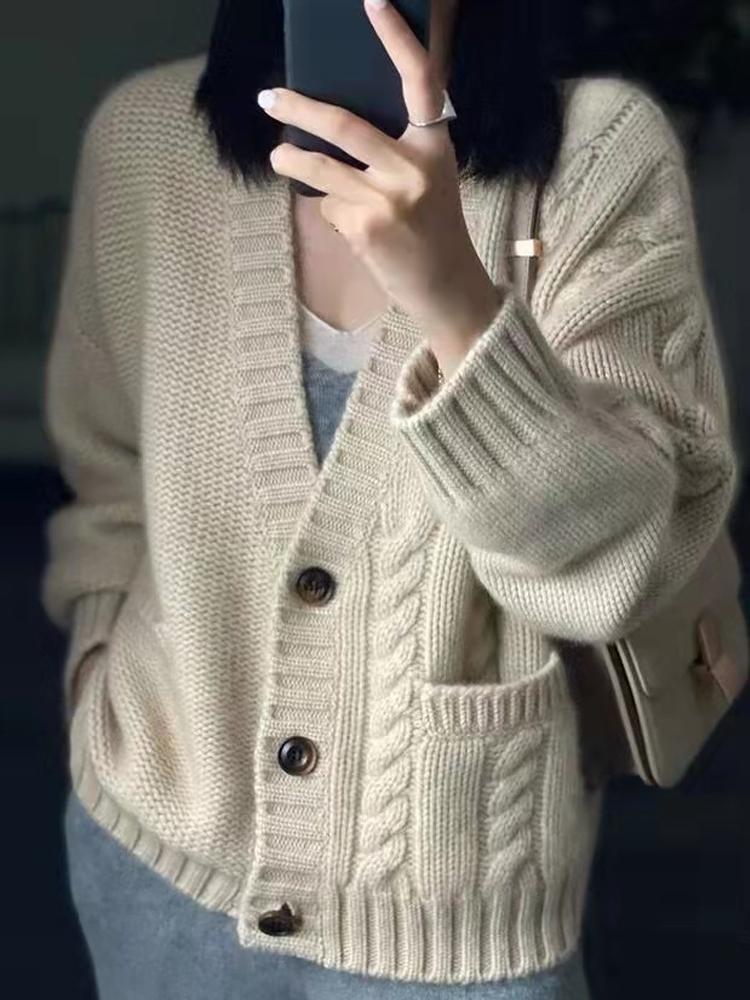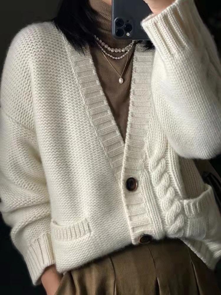 가을 겨울용 100% 순모 카디건 여성용 V넥 케이블 니트 두꺼운 스웨터 루즈한 레이지 니트 코트 맞춤 제작 가능