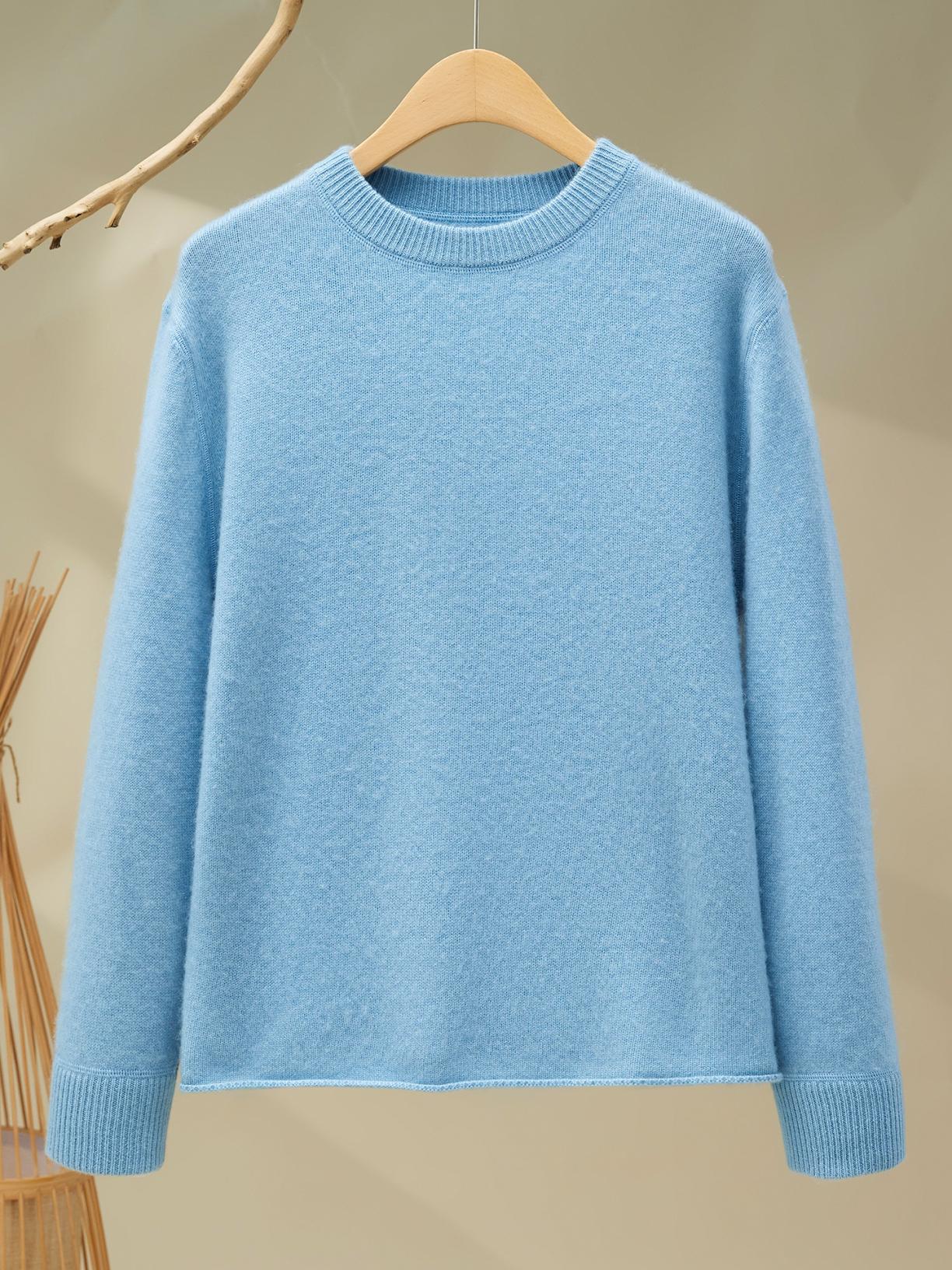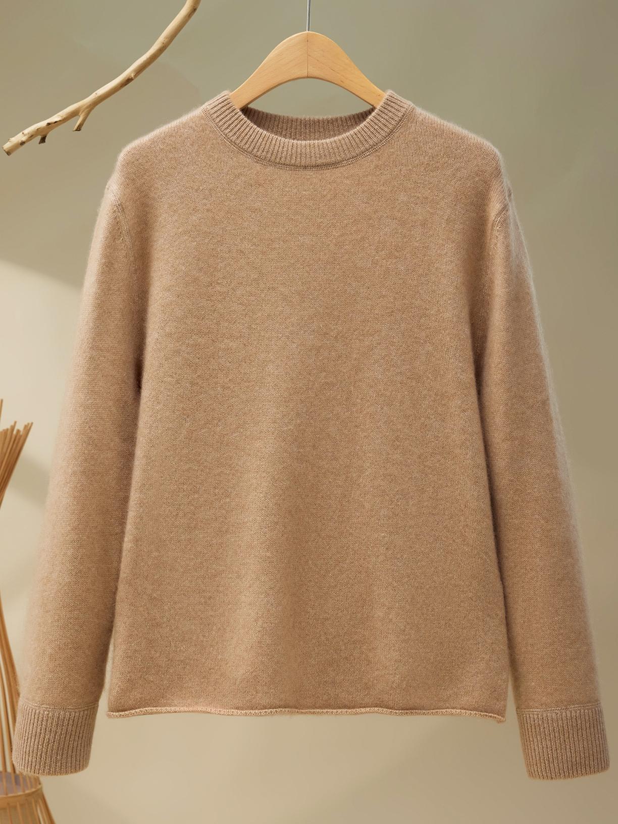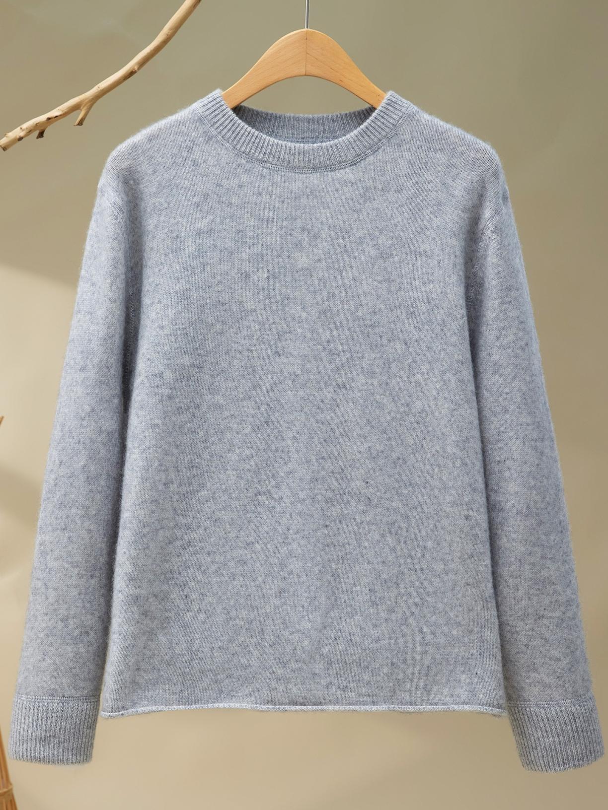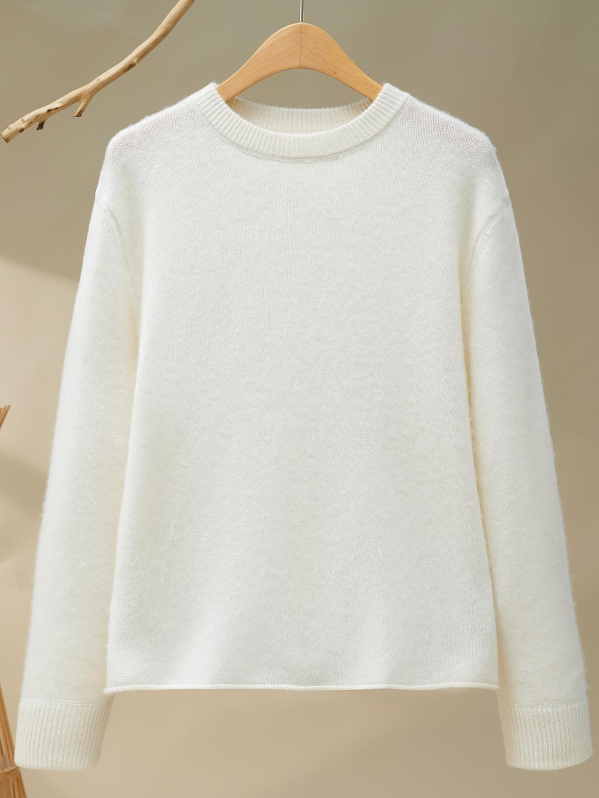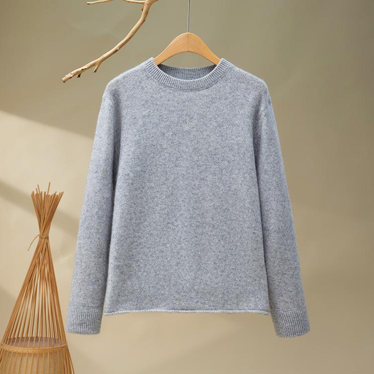 가을, 겨울 라운드넥 캐시미어 스웨터 여성용 루즈한 솔리드 컬러 레이지 긴팔 울 소프트 글루티너스 니트 바텀 셔츠 탑