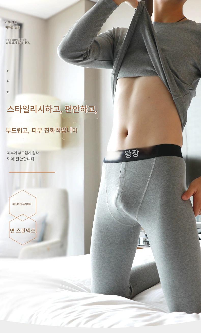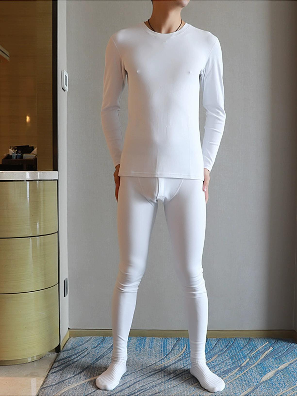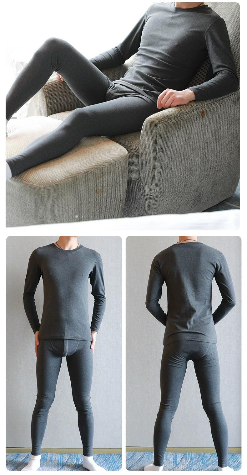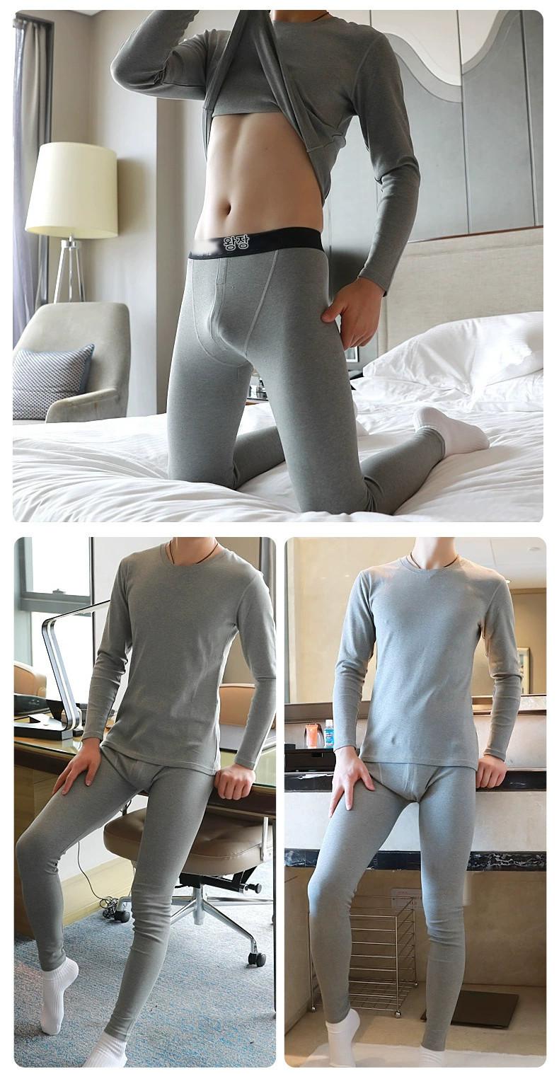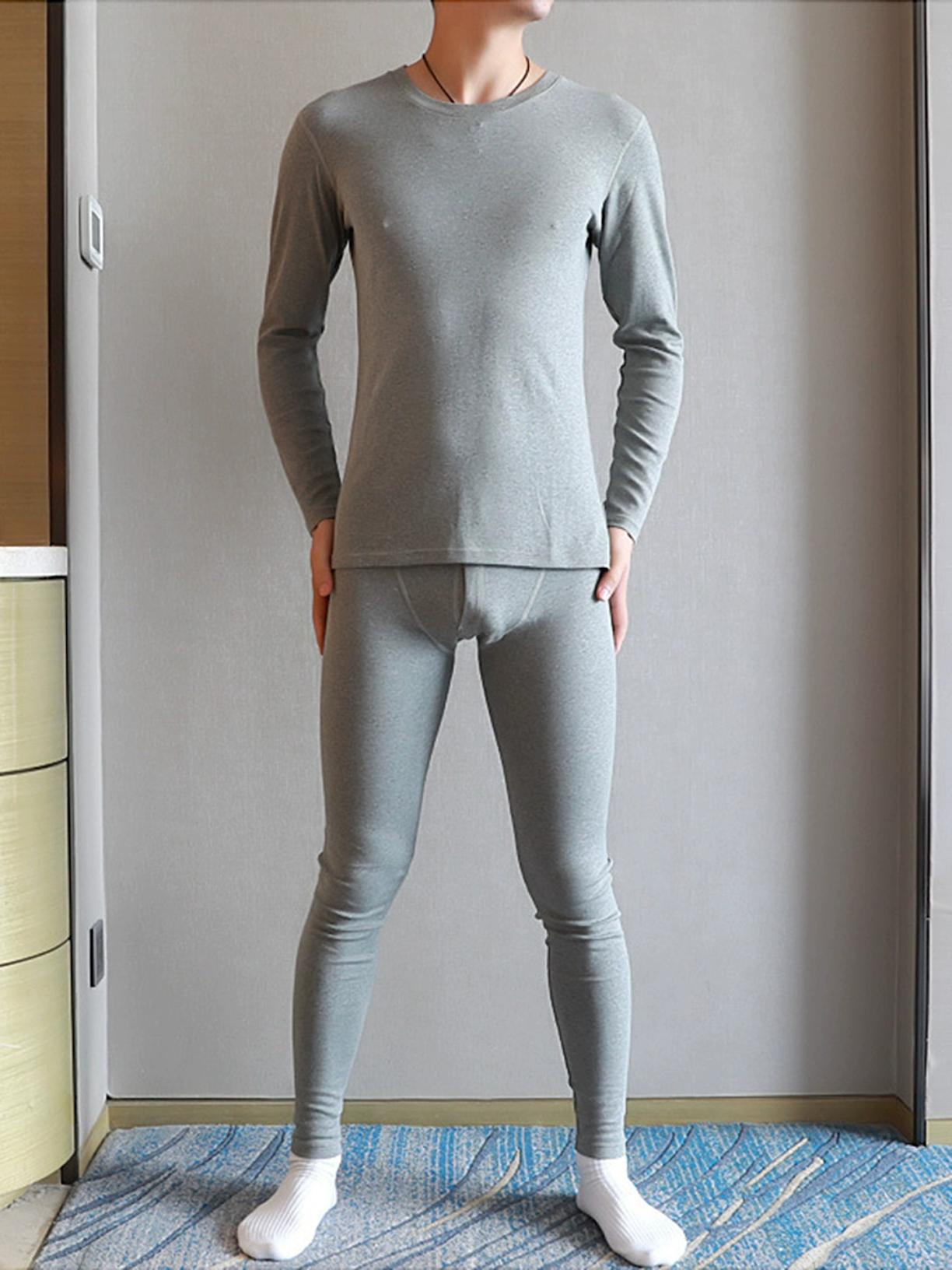 가을/겨울 순면 남성용 써멀 속옷 세트, 단색, 미드웨이스트, 핏, 고탄력, 부드러움, 오픈 피스