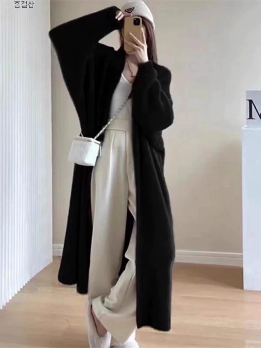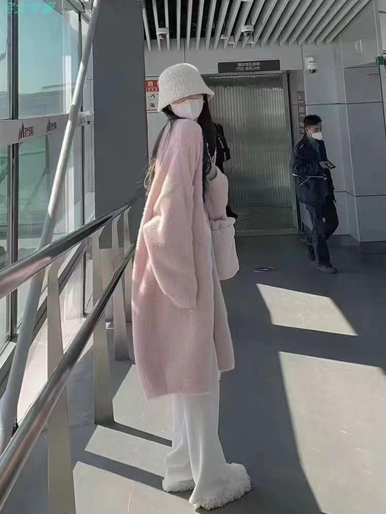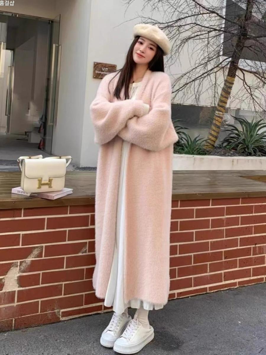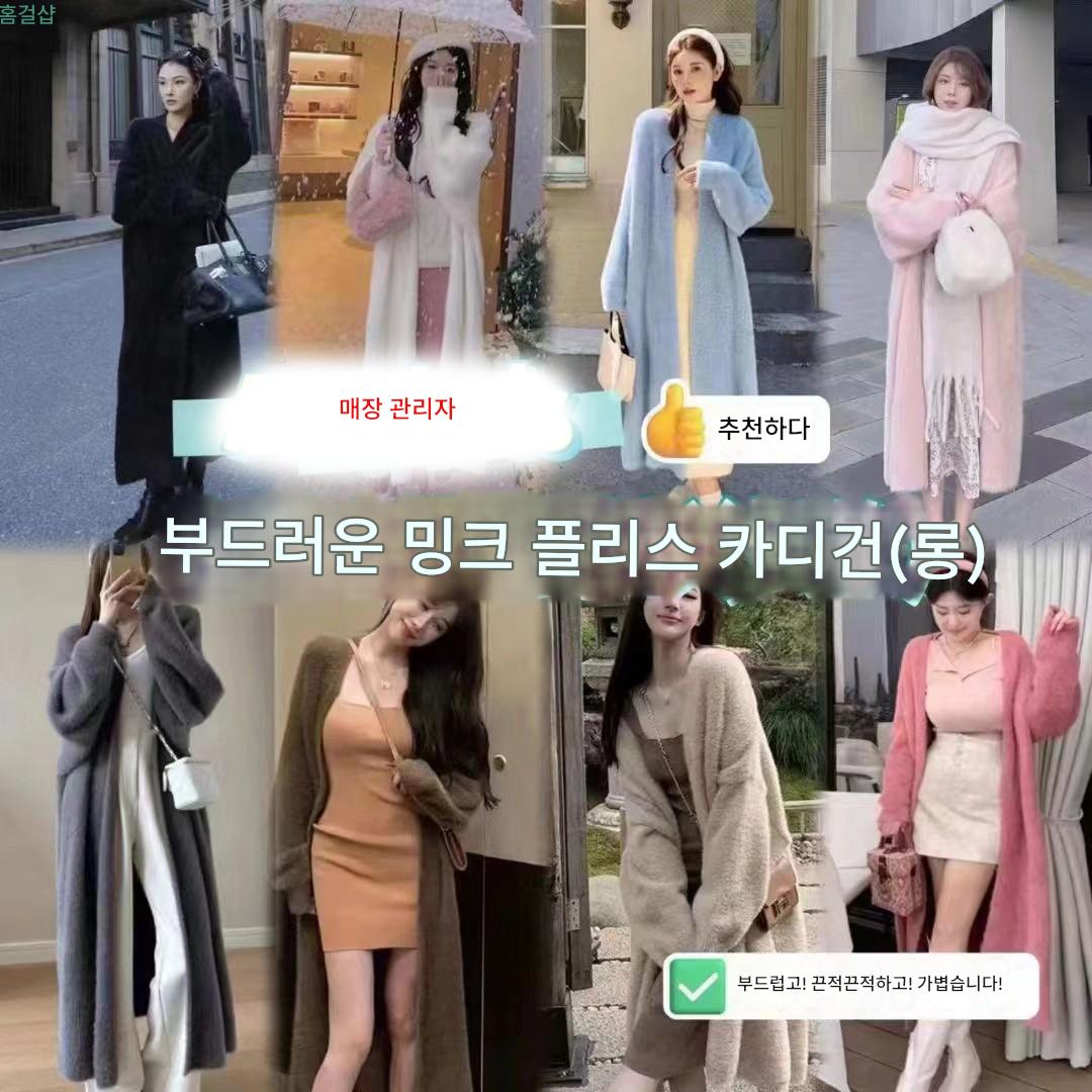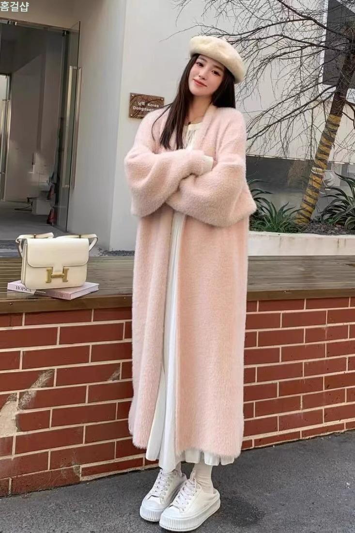 가을 겨울 핫앤페어리 루즈 레이지 스타일 두꺼운 모조 밍크 벨벳 롱 무릎 길이 스웨터 다용도 카디건 재킷