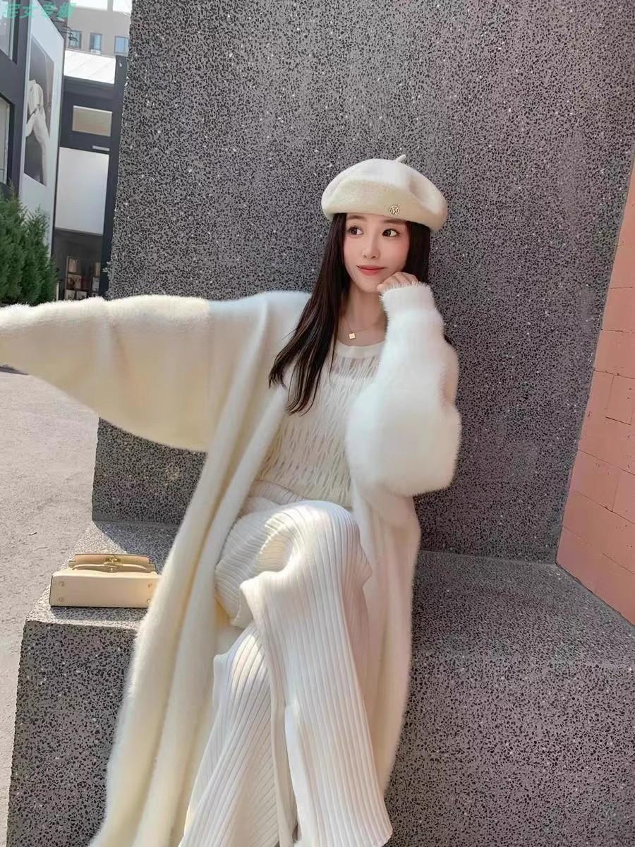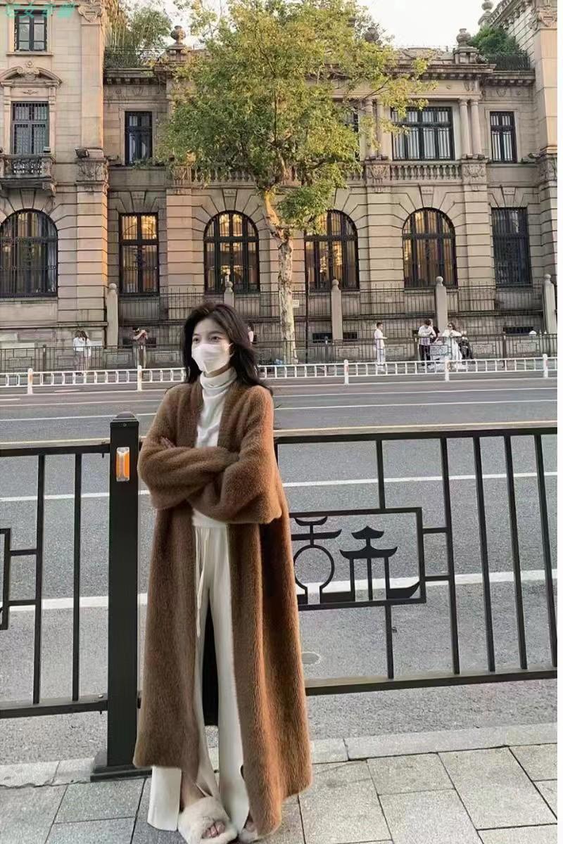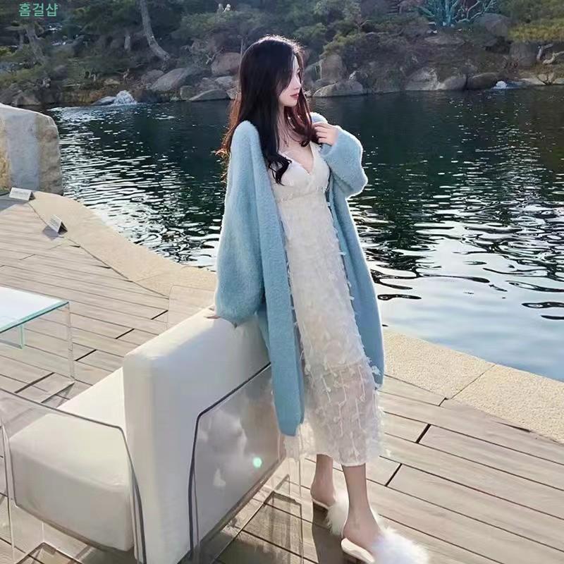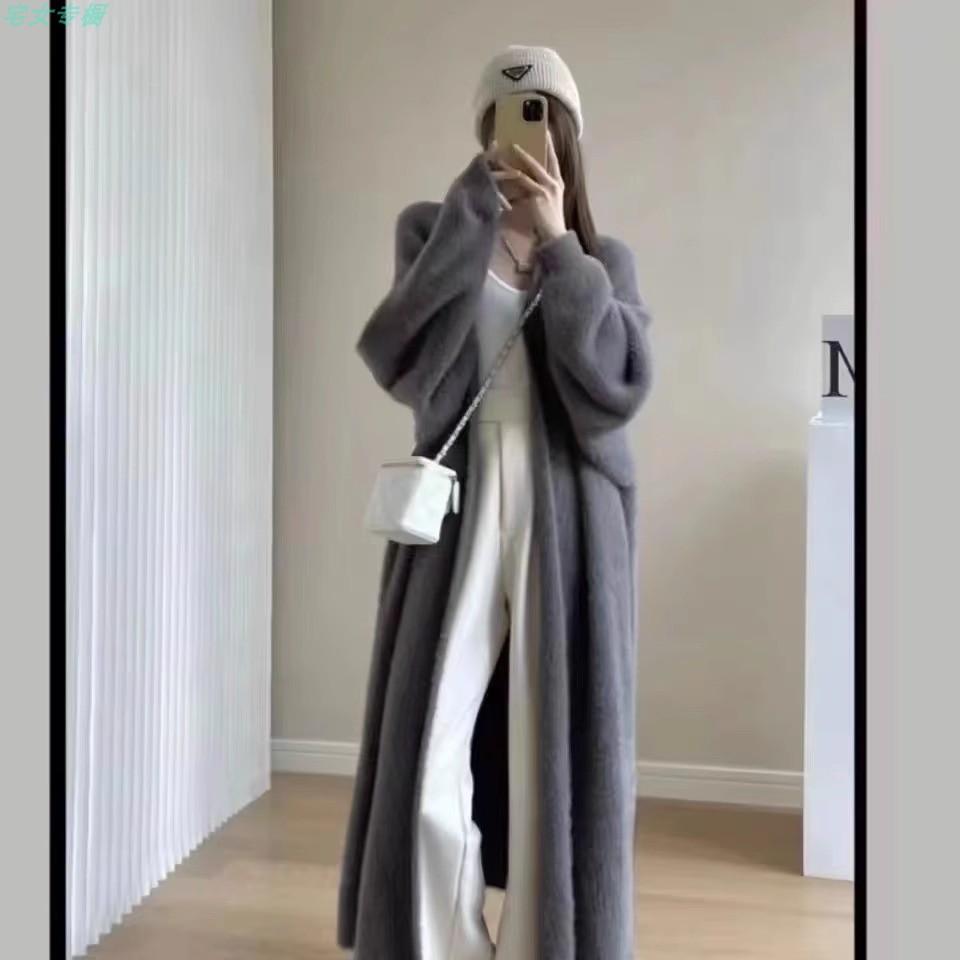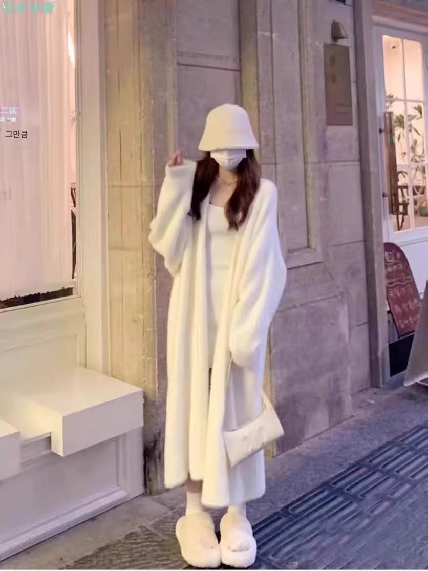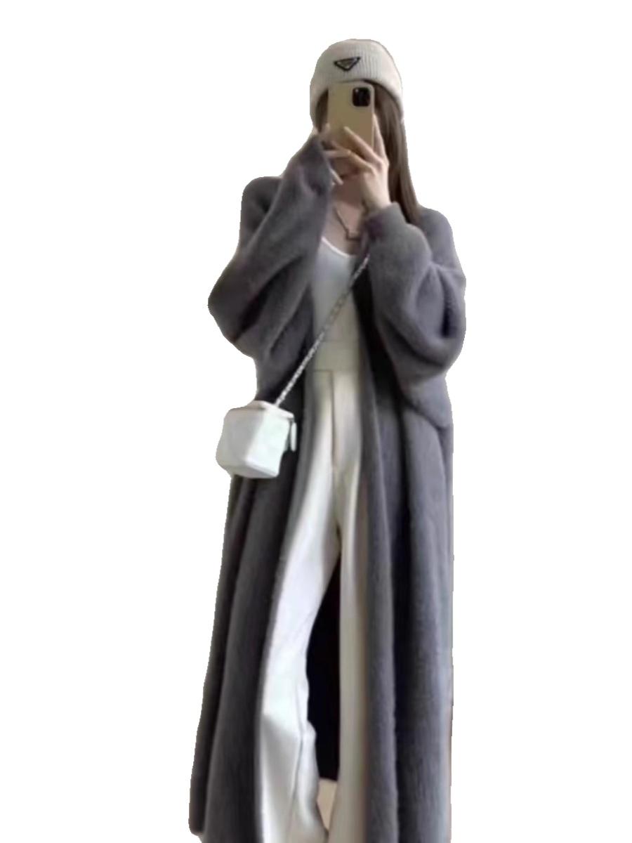 가을 겨울 핫앤페어리 루즈 레이지 스타일 두꺼운 모조 밍크 벨벳 롱 무릎 길이 스웨터 다용도 카디건 재킷