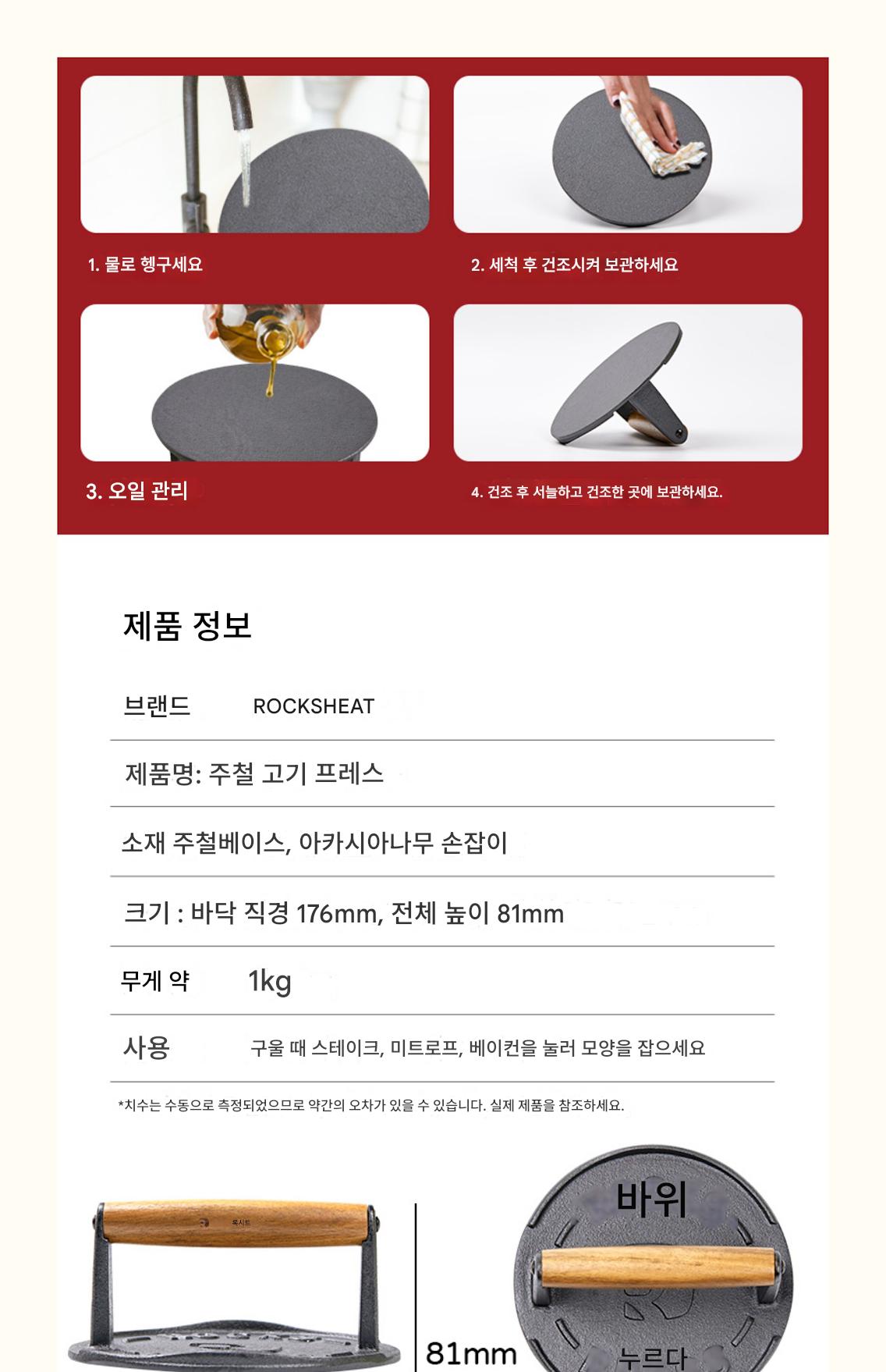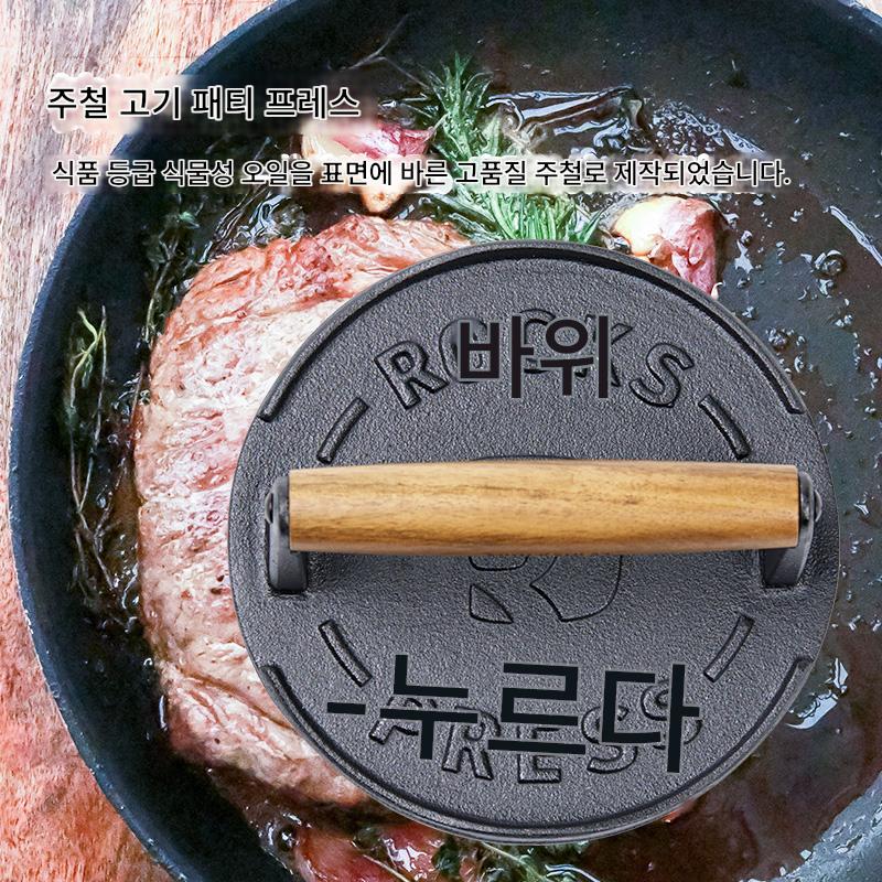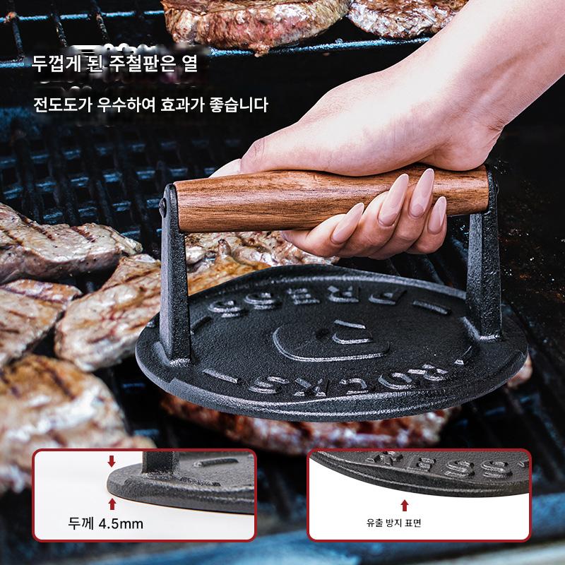 가정용 스테이크 고기 프레스 주철 바베큐 철판구이 케이크 프레스 햄버거 고기 패티 인공물 튀긴 고기 프레스 도구