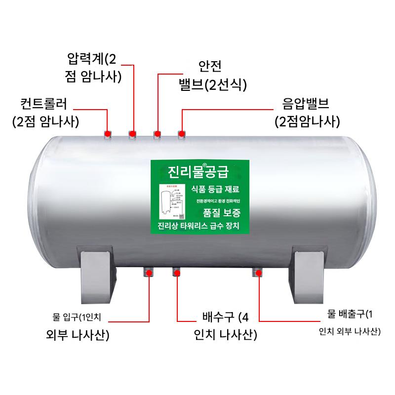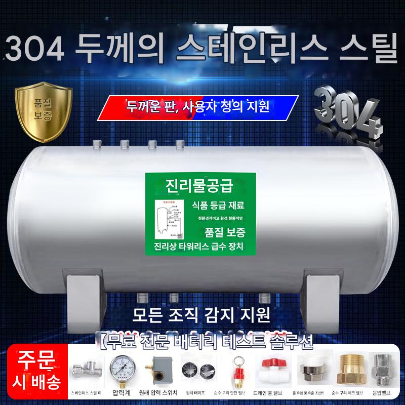가정용 304 수평형 두껍게 한 스테인리스 압력 탱크 전자동 타워리스 급수 부스터 물탱크 수돗물 펌프