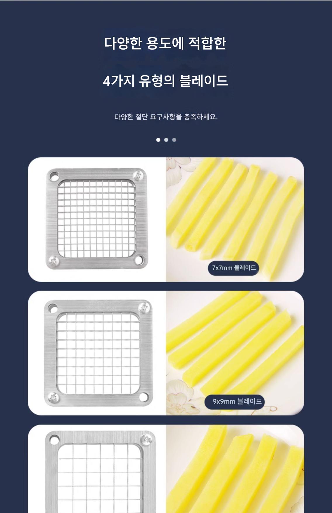 감자, 오이, 무, 상추, 감자튀김, 푸셔, 다이스, 사과 슬라이서를 자르는 상업용 감자 슬라이서