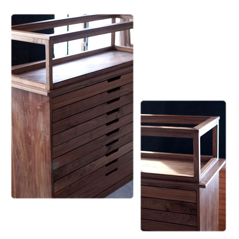 검은 호두 진열장, 중고 견고한 목재 맞춤형 보석 캐비닛 선반, 견고한 목재 맞춤형 서랍장