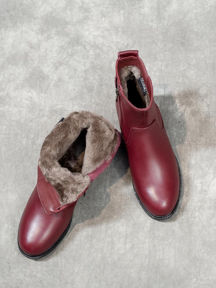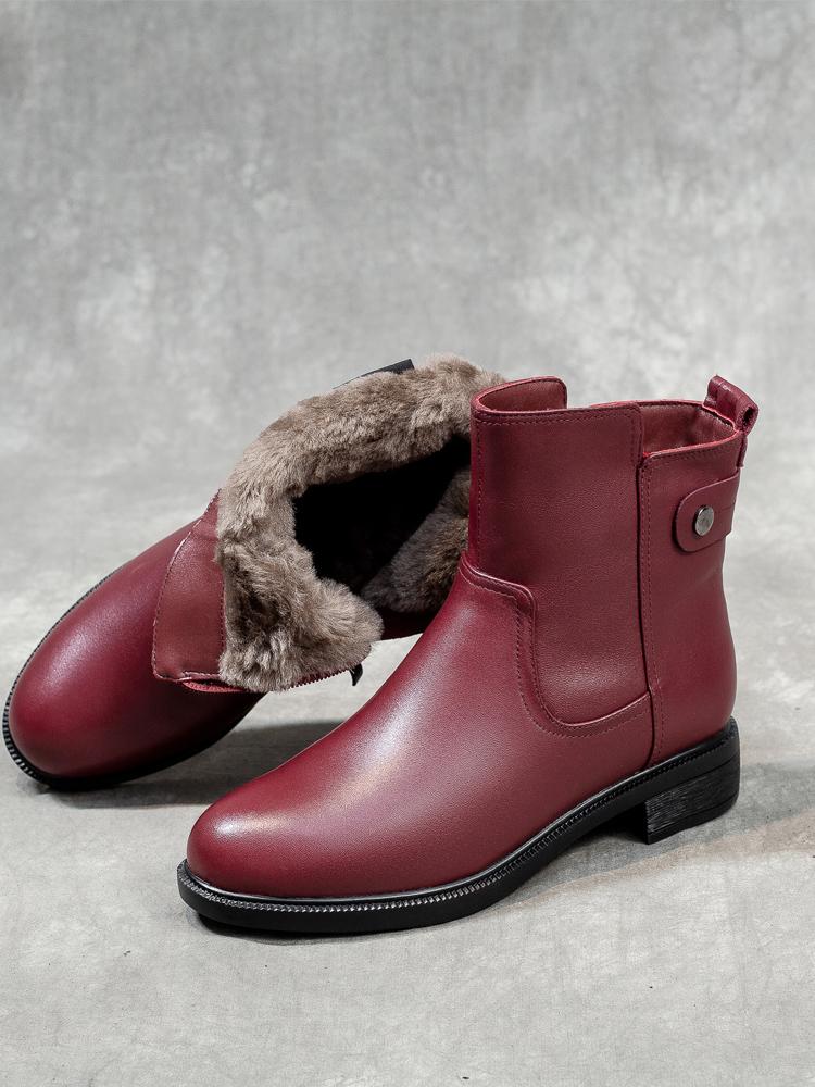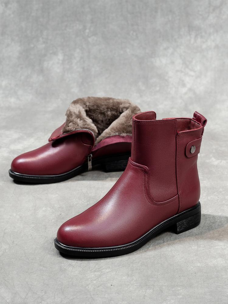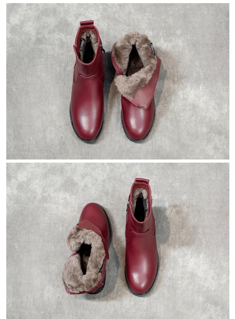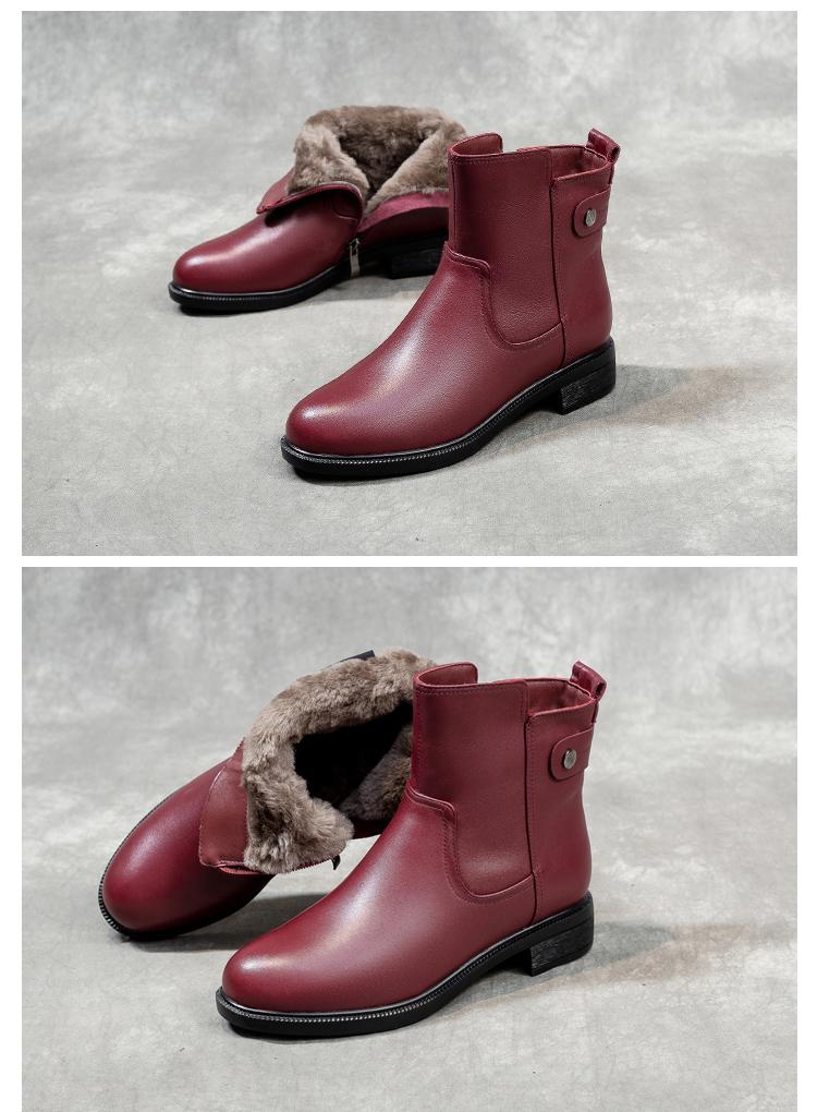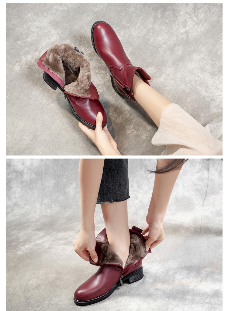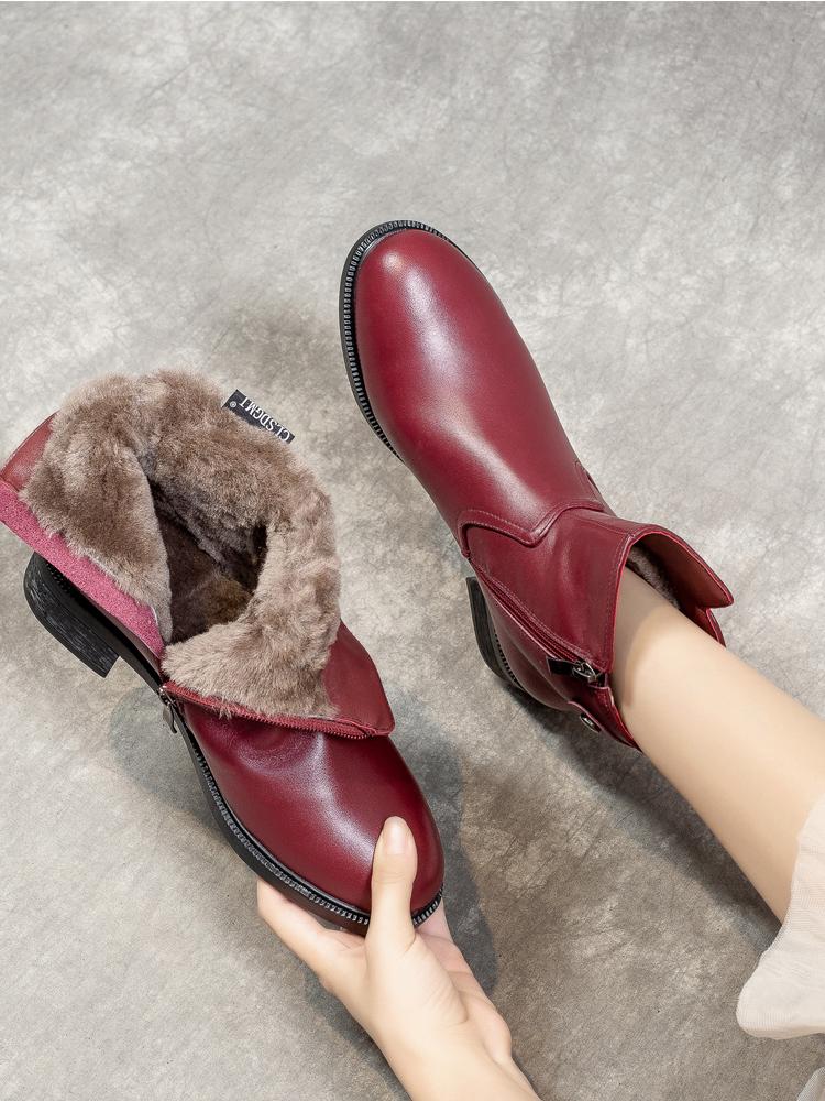 겨울 라운드 투 퍼 통합 여성용 부츠 따뜻하고 두꺼운 와인 레드 울 짧은 부츠 여성 두꺼운 바닥 북동부 면화 신발