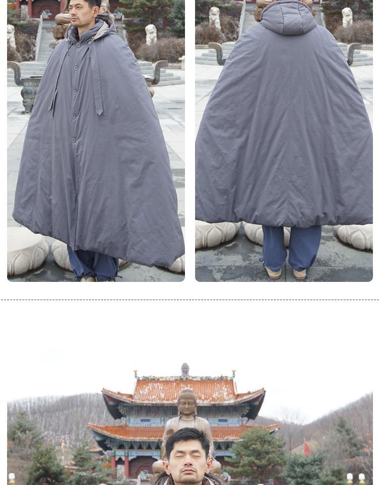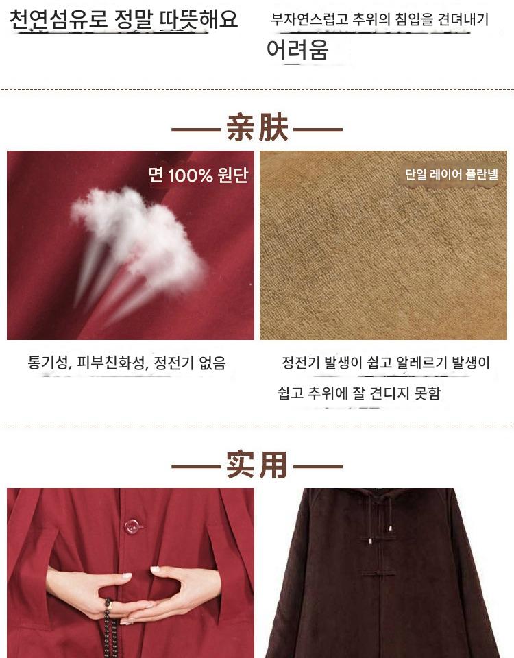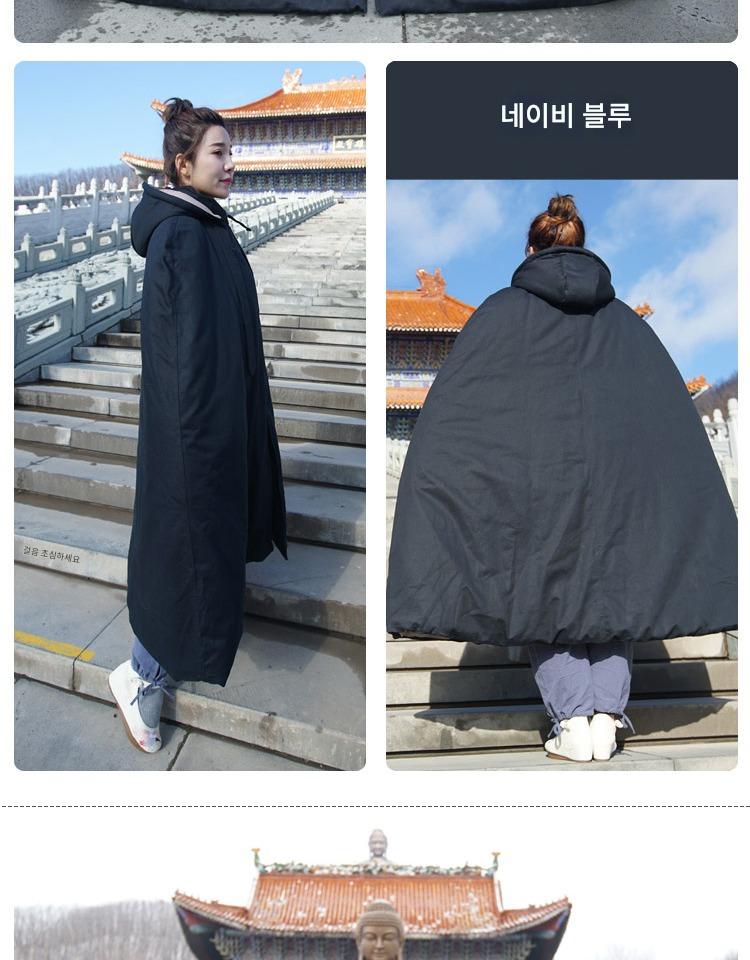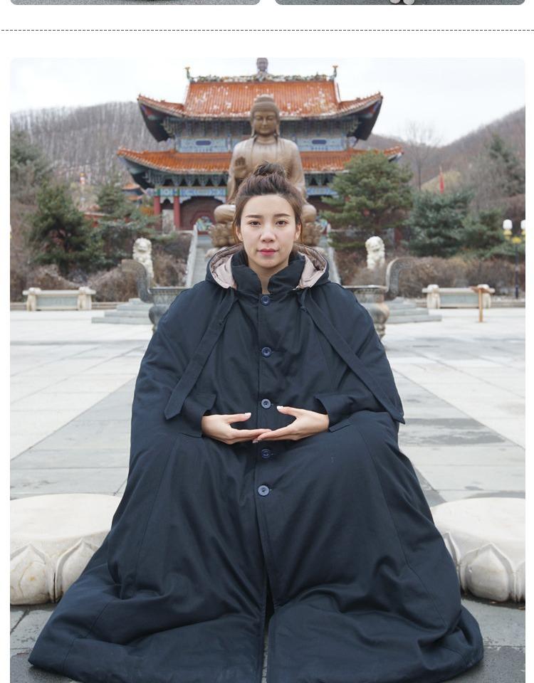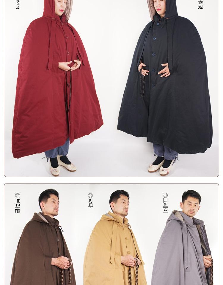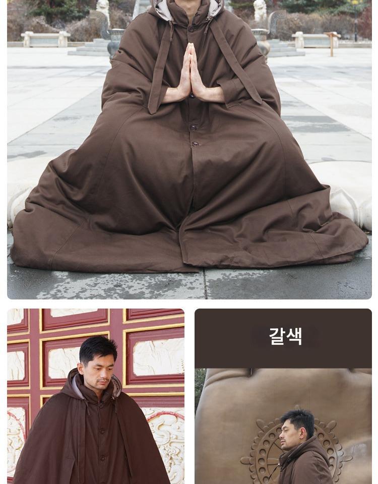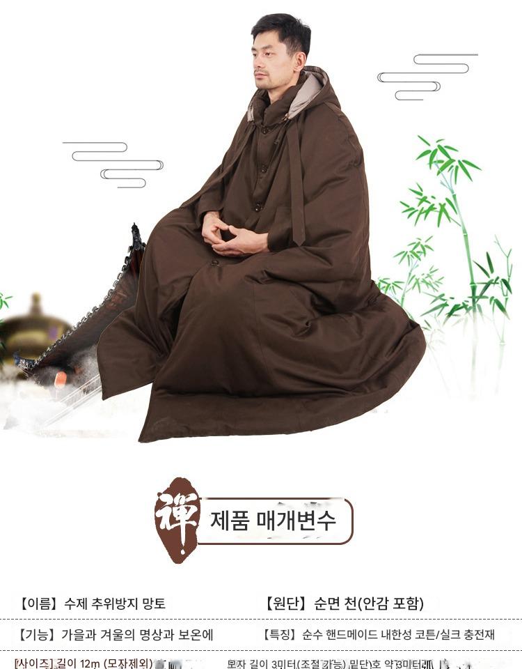 겨울 면 두꺼워진 순면 롱 명상 망토 선 망토 관음 망토 승려 옷 평신도 추위 남녀