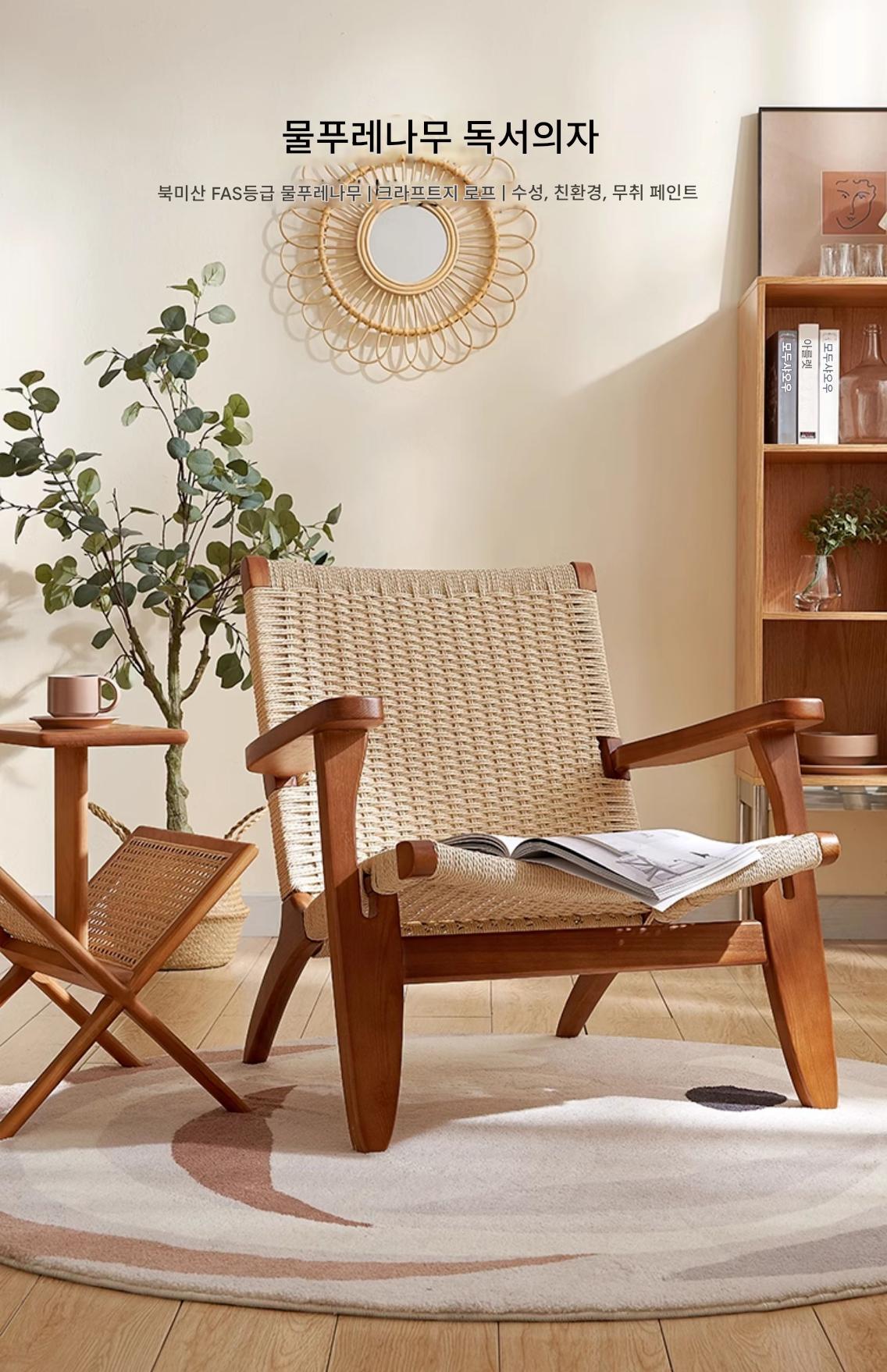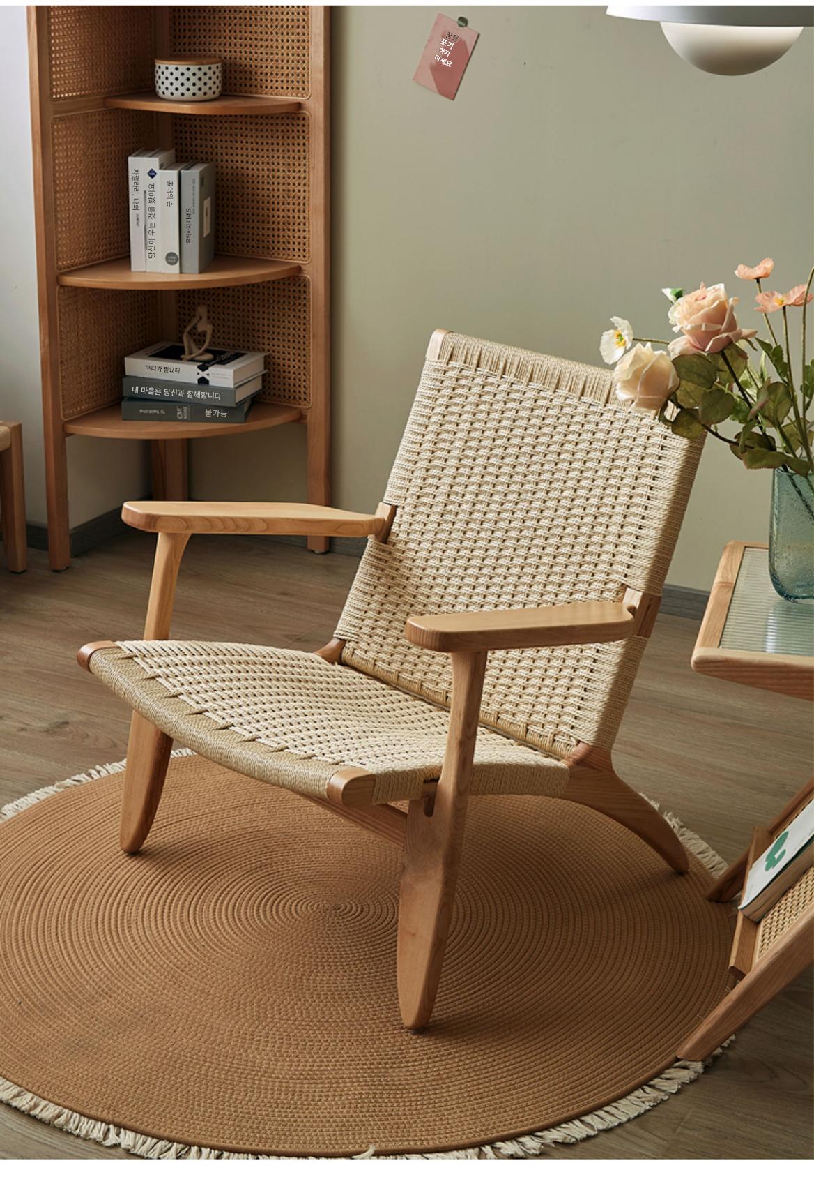 견고한 나무 라탄 안락의자 홈 거실 발코니 등받이 독서 의자 심플한 싱글 소파 의자 게으른 디자이너