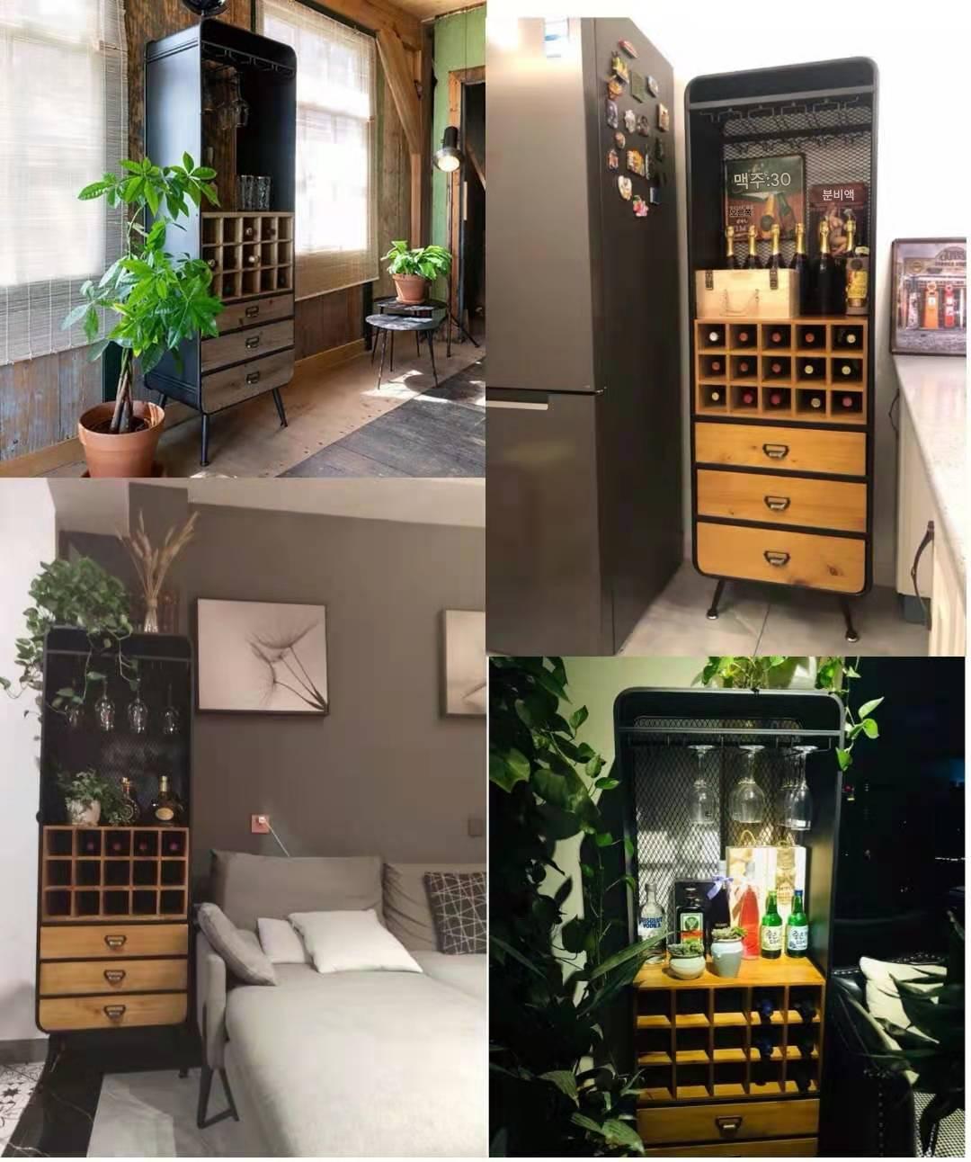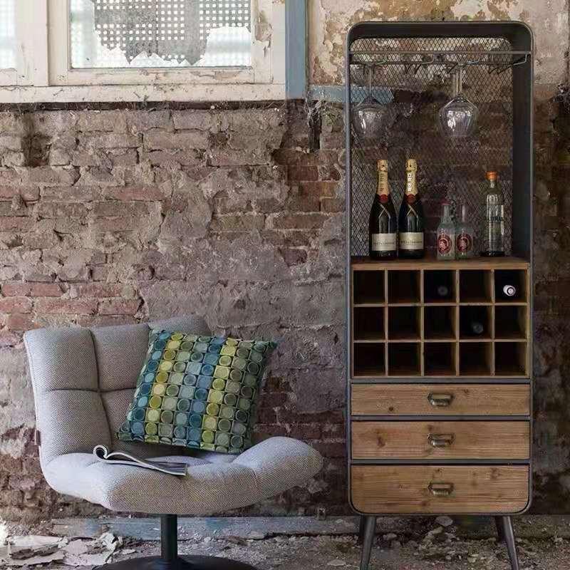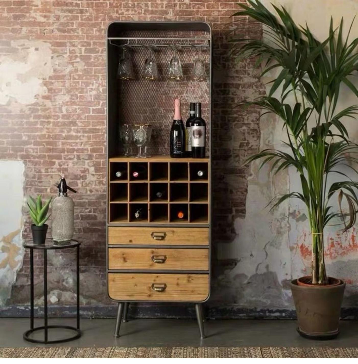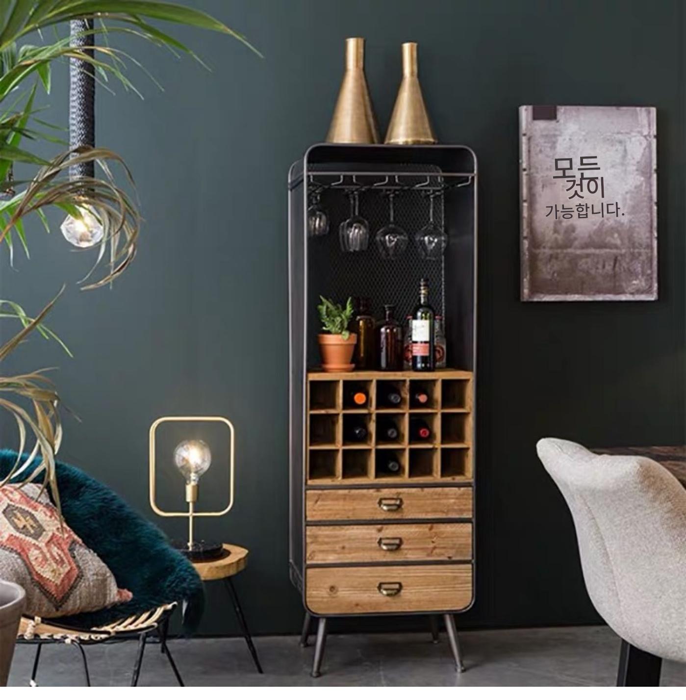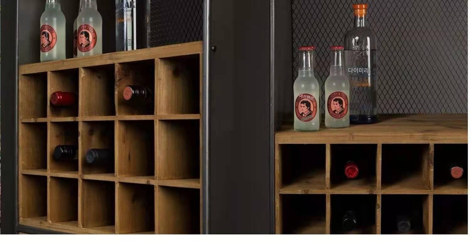견고한 목재 산업 스타일 와인 캐비닛 보관 캐비닛 높은 발 유리 거꾸로 홈 소형 와인 랙 KTV 바 레드 와인 그리드 캐비닛