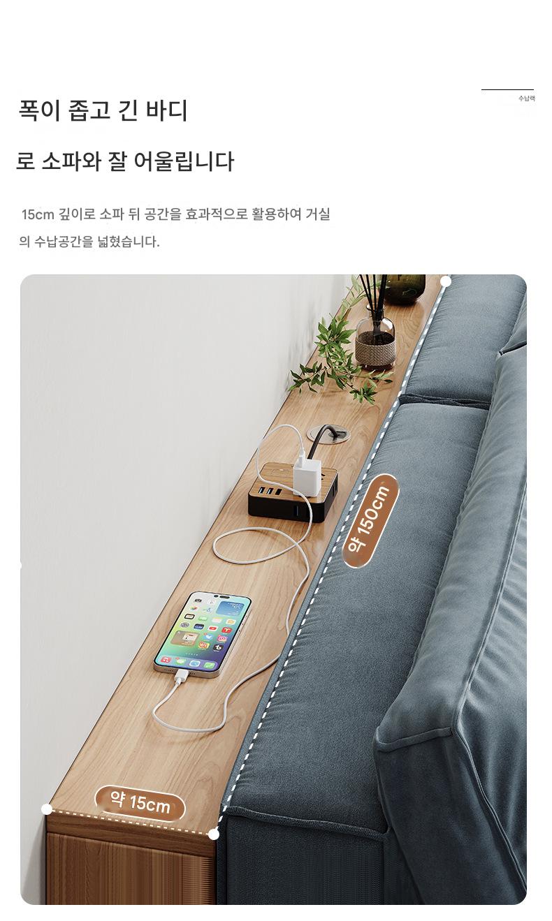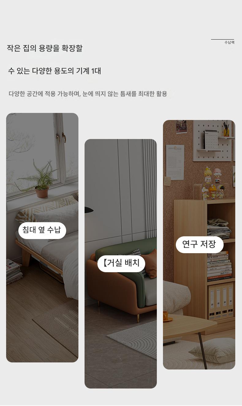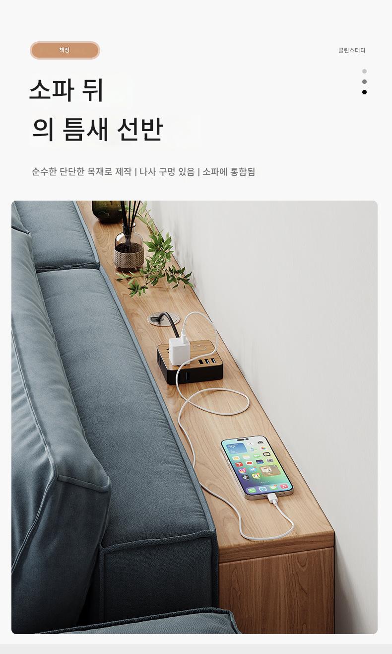 견고한 목재 소파 뒷부분 랙 벽면 거실 수납 침실 침대 머리와 꼬리 공간 활용 틈새 길고 좁은 캐비닛