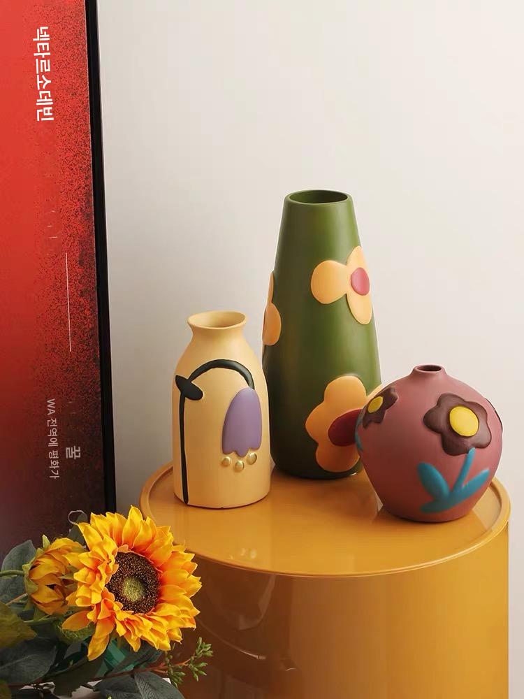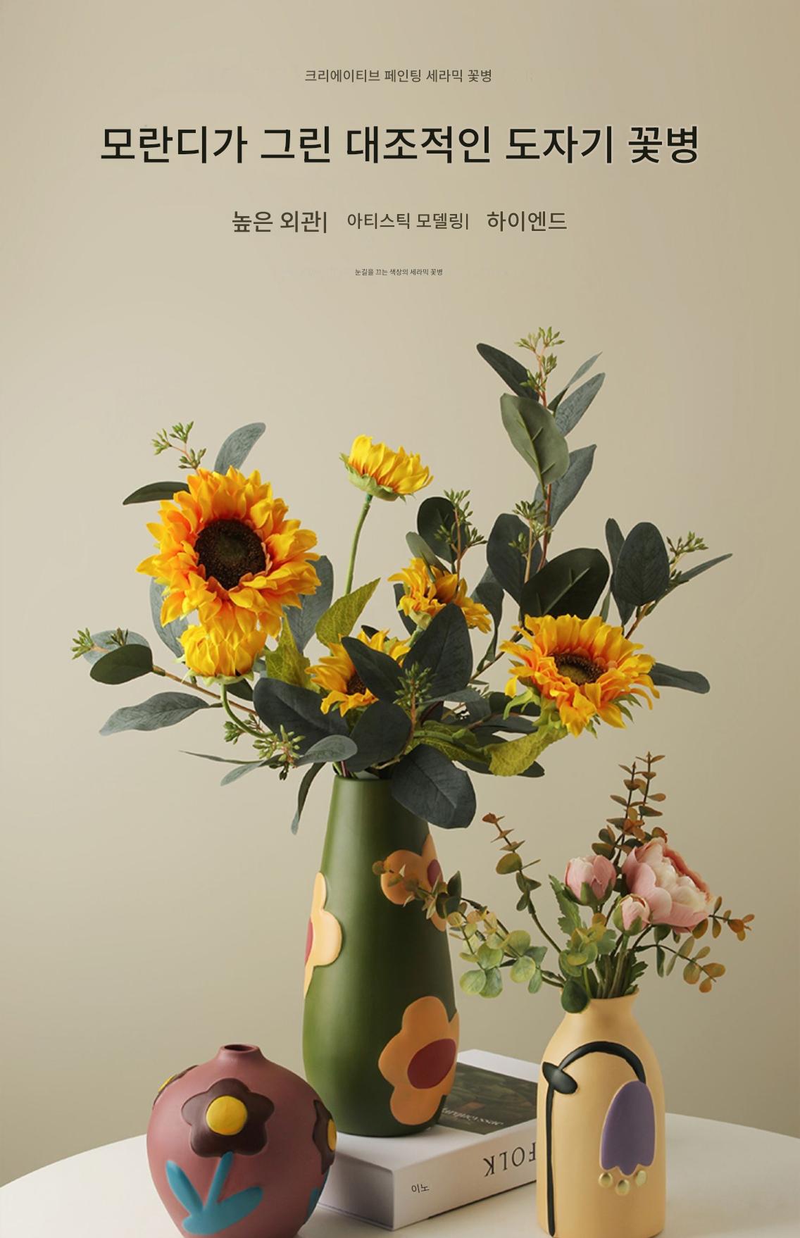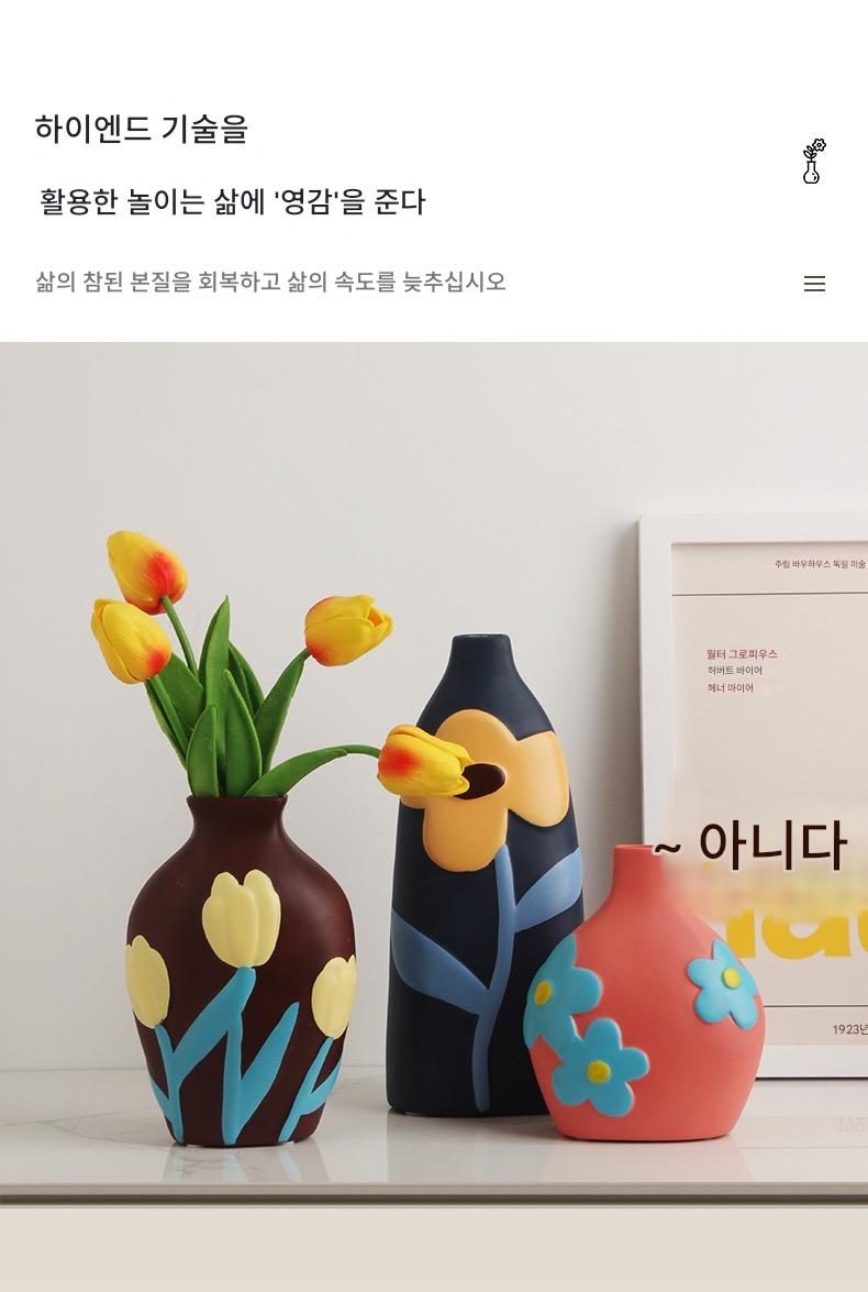 고가치 노르딕 인스 세라믹 꽃병 크리에이티브 모란디 컬러 화분 홈 현관 TV 캐비닛 조리대 장식