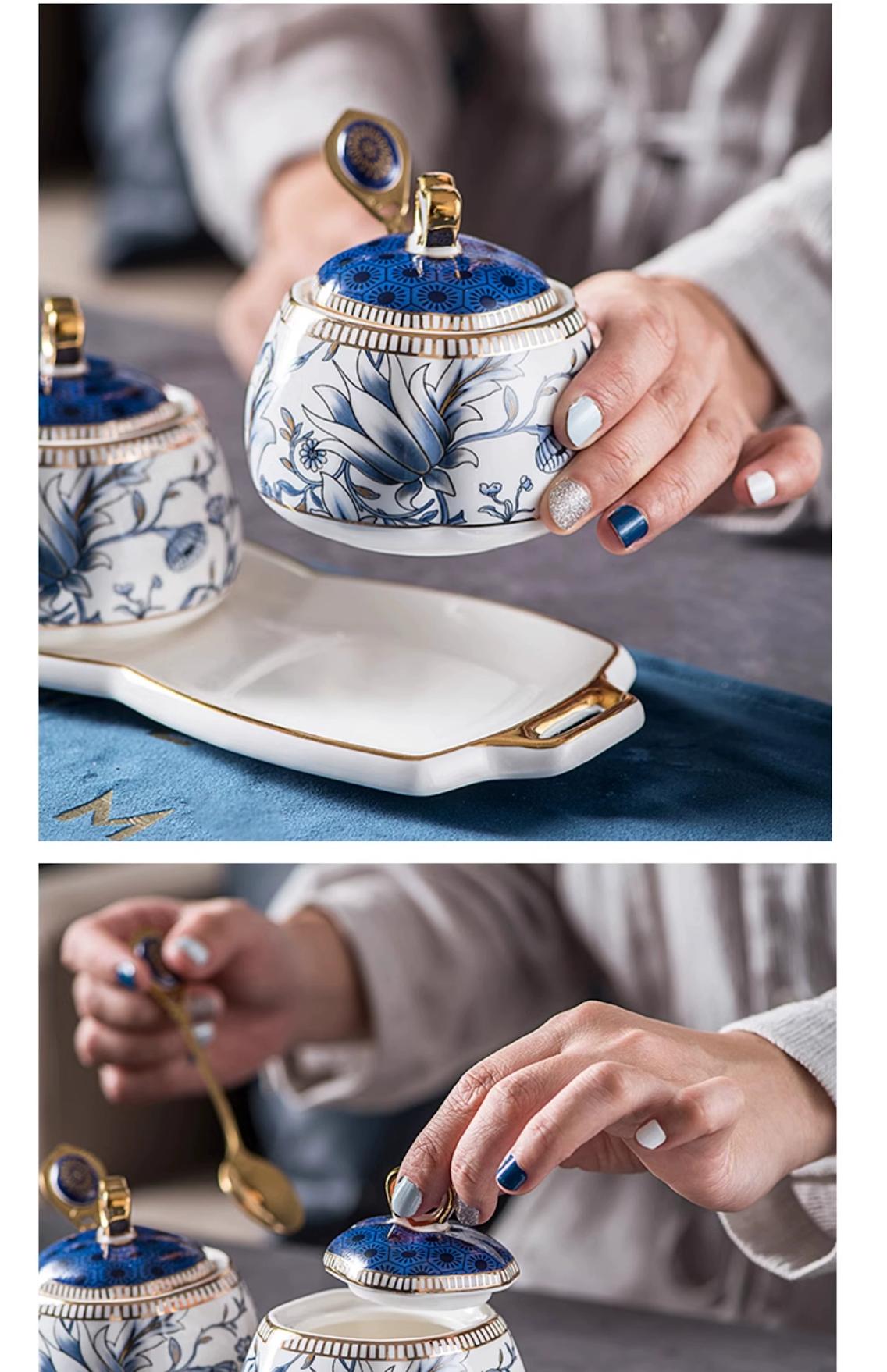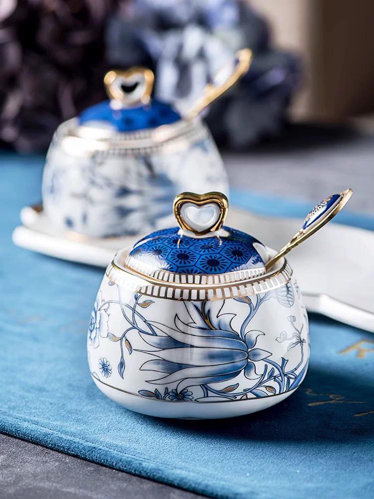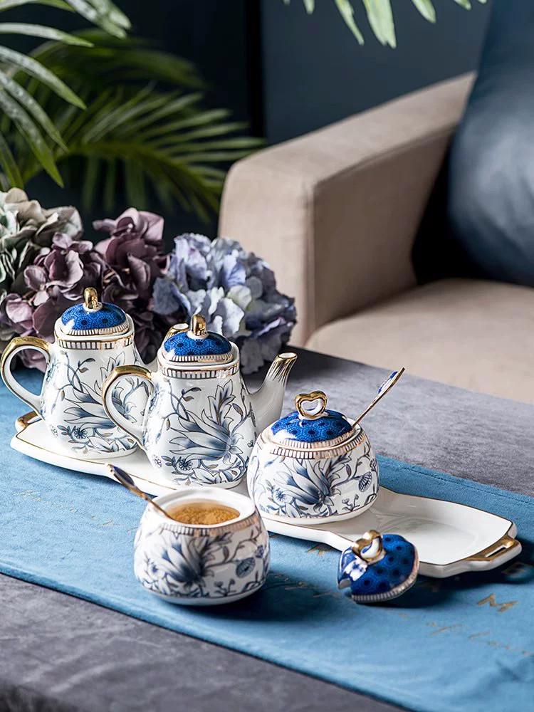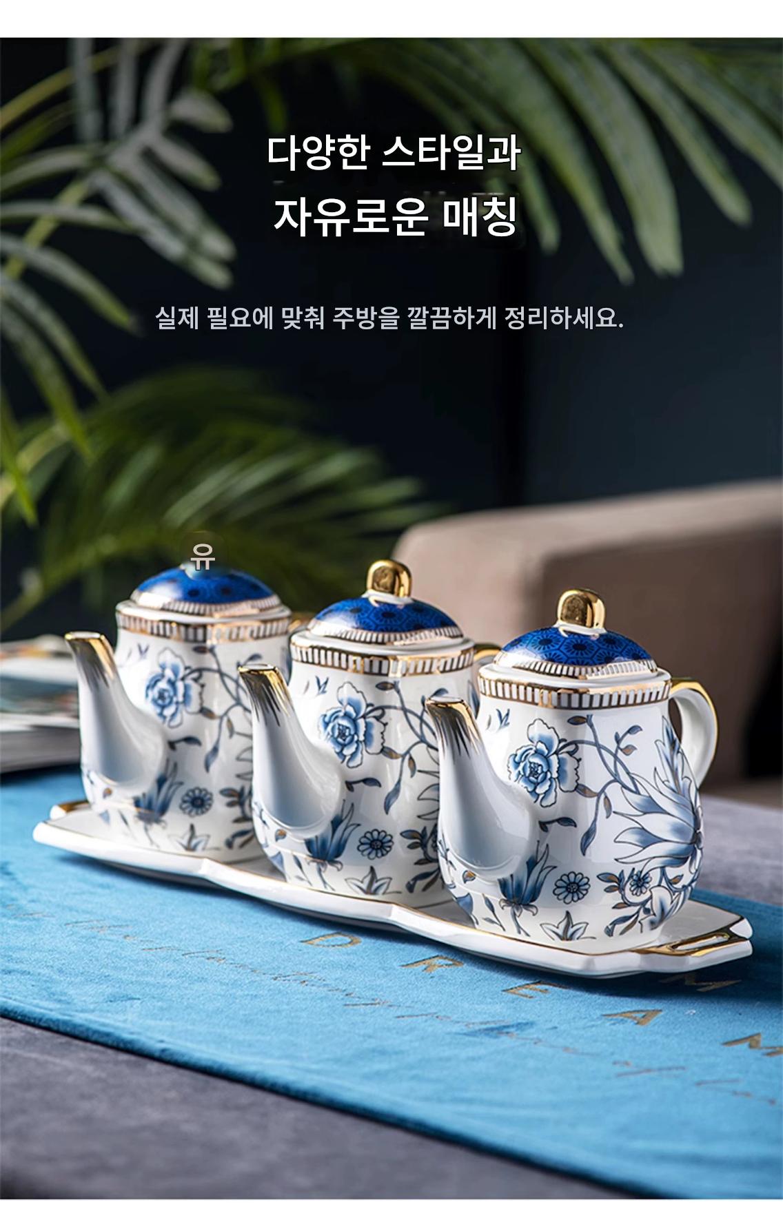고가치 크리에이티브 가정용 세라믹 조미료 병 오일, 소금, 소스 및 식초 냄비 고급 주방 조미료 상자 보관 조합 세트