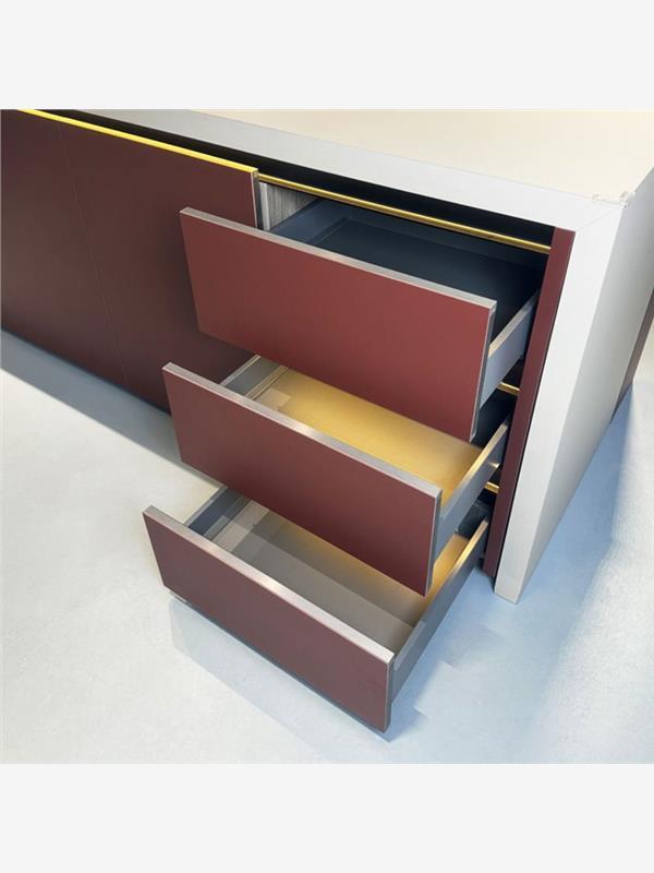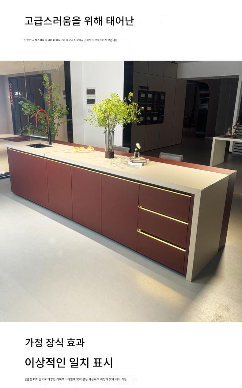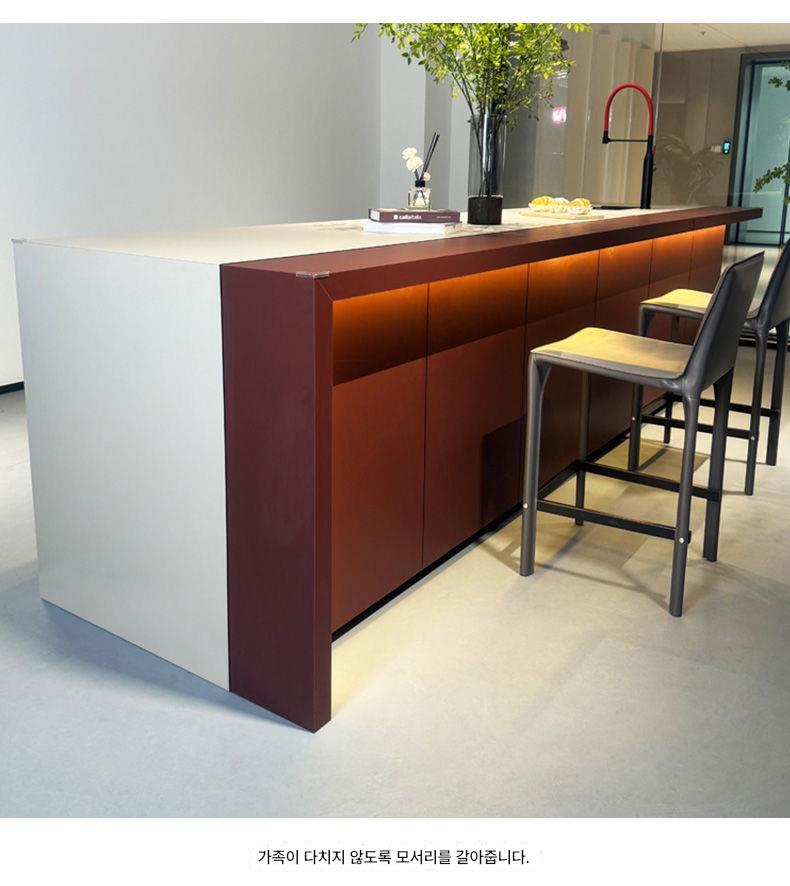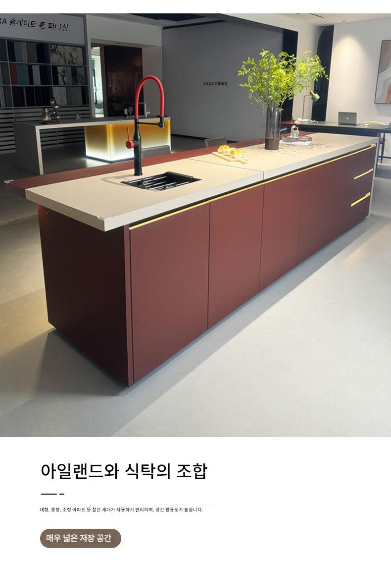 고급 맞춤형 록 슬래브 고급 센터 아일랜드 다이닝 테이블 통합 산호 레드 플러시 다기능 풀 아일랜드 레스토랑 바