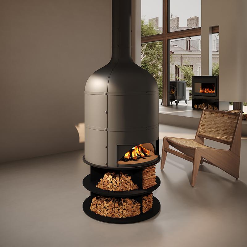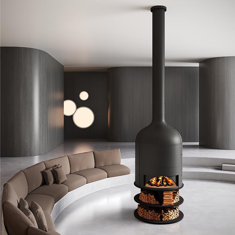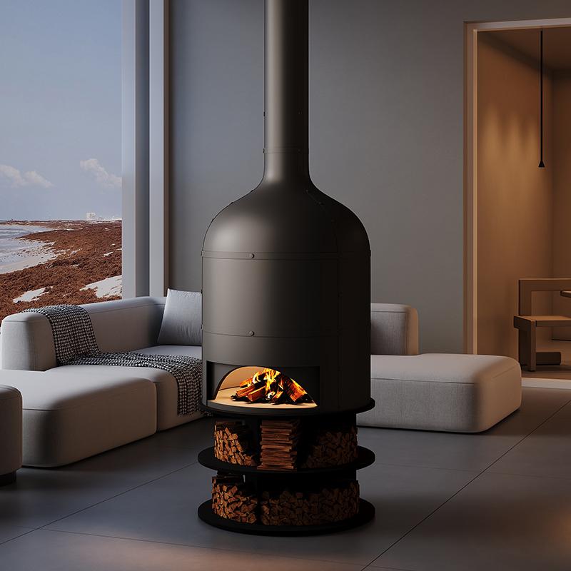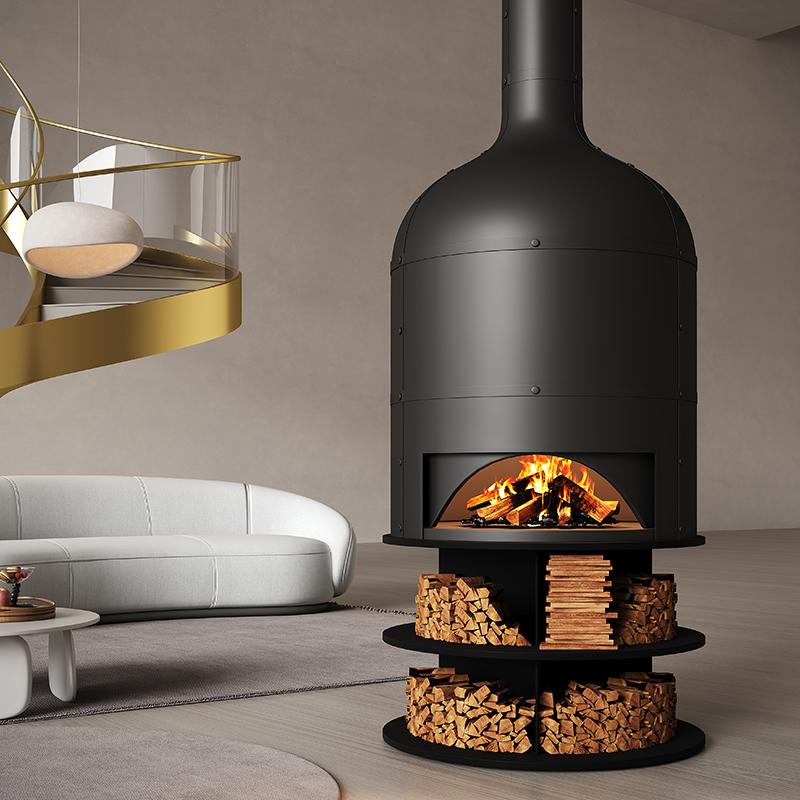 고급 맞춤형 원통형 검은색 벽난로 홈 실내 빌라 거실 벽난로 히터 홈 장작 무연