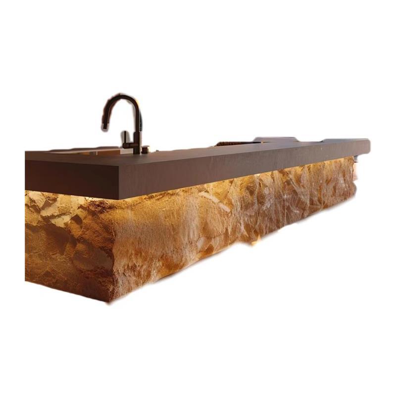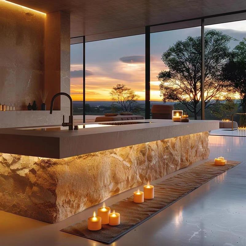 “고급 스톤 슬래브 아일랜드 테이블 식탁 통합형 맞춤 주방 홈 가이드 테이블 다운턴 라이트 고급 고급 서양식 주방 바”의 첫 상품평을 남겨 주세요