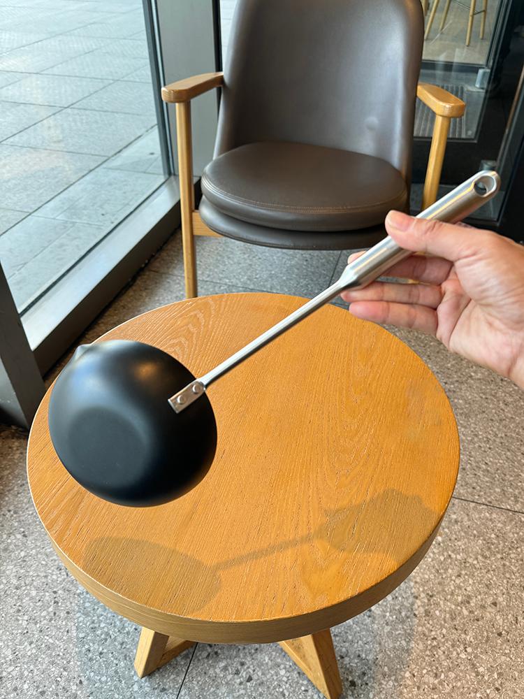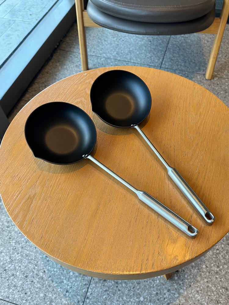 고급 철제 코팅이 안 된 기름 튀는 팬! 가정용 스테인리스 스틸 롱 핸들 오일 붓기 뜨거운 오일 특수 튀김 만두 불타는 오일 프라이팬 계란 프라이팬