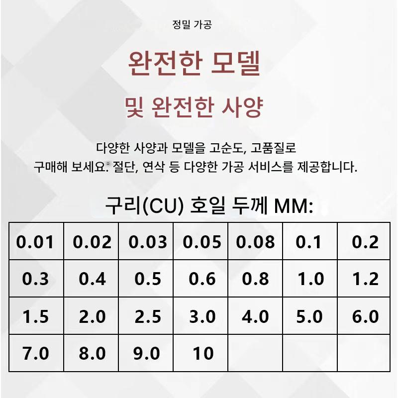 고순도 금속 구리 호일, 구리 시트, 구리 판, 구리 스트립, 구리 디스크, 구리 황동 호일, 실험 과학 연구 맞춤형