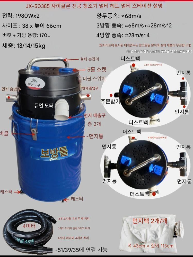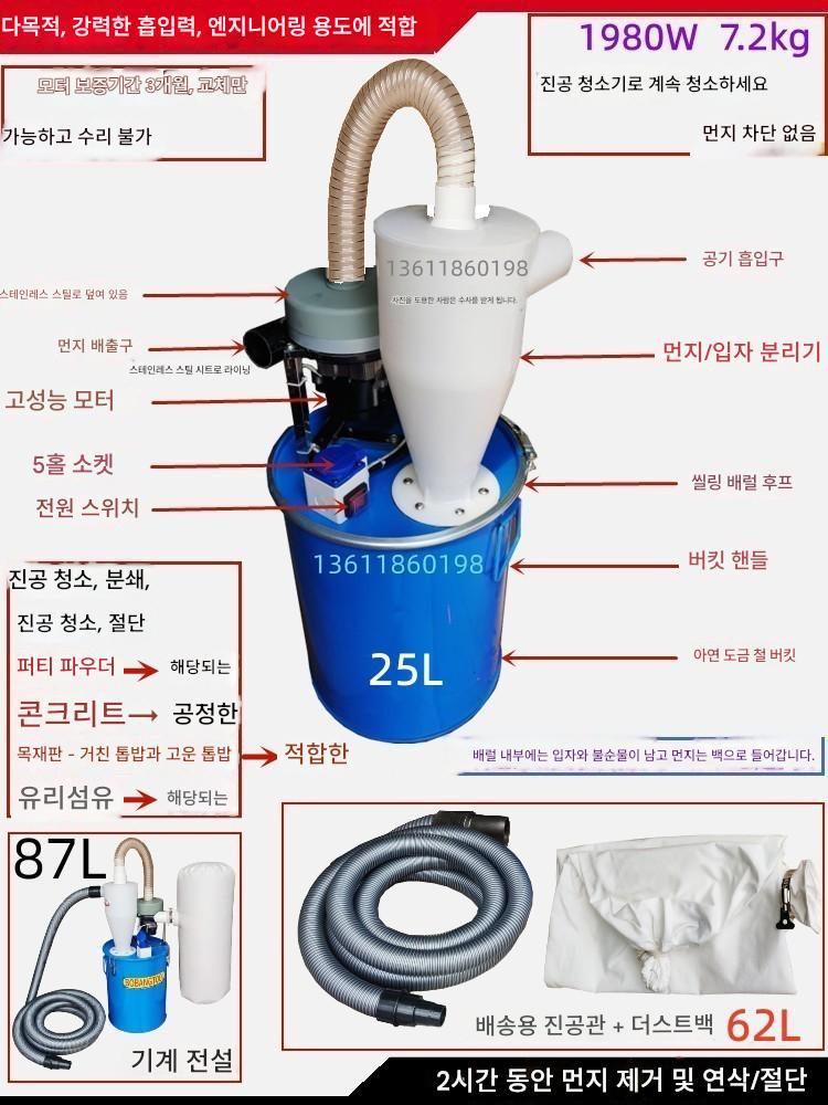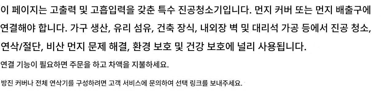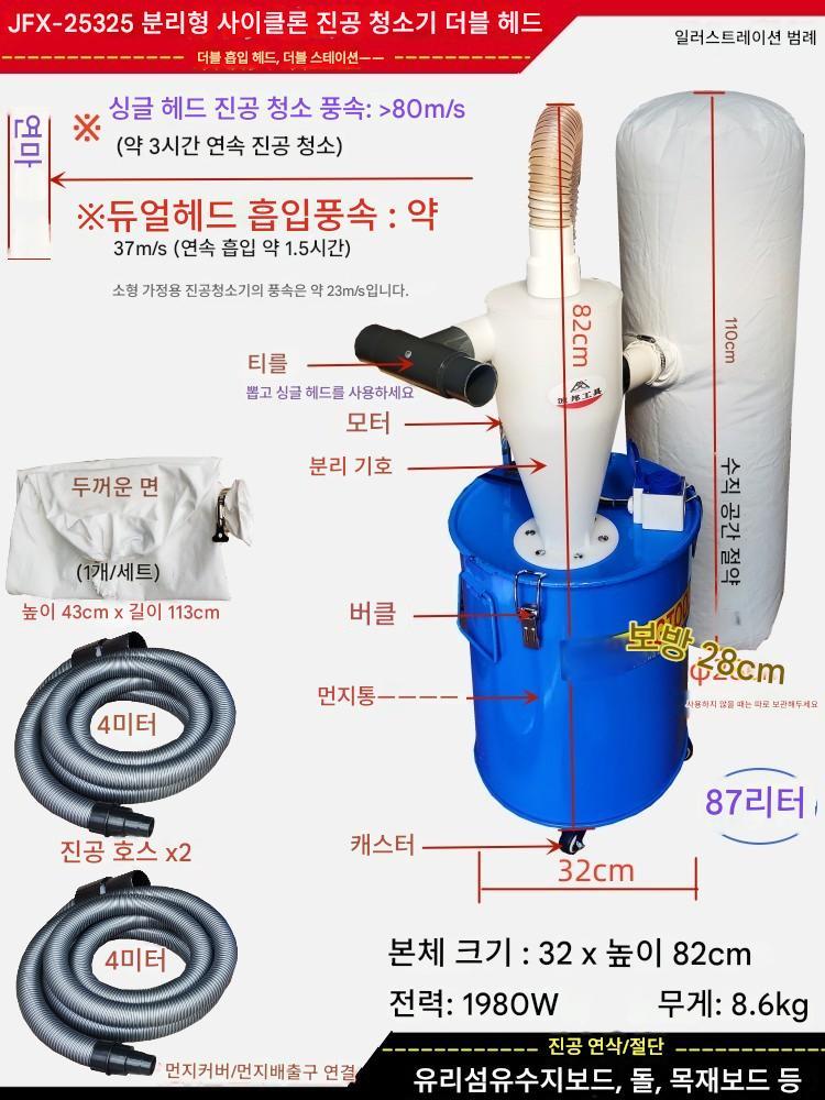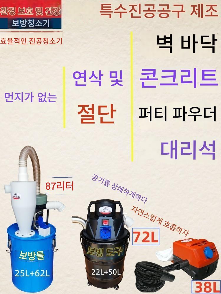 고출력 진공청소기, 유리섬유강화플라스틱 무진공연삭기, 수지판 집진기, 보텍스 진공청소기