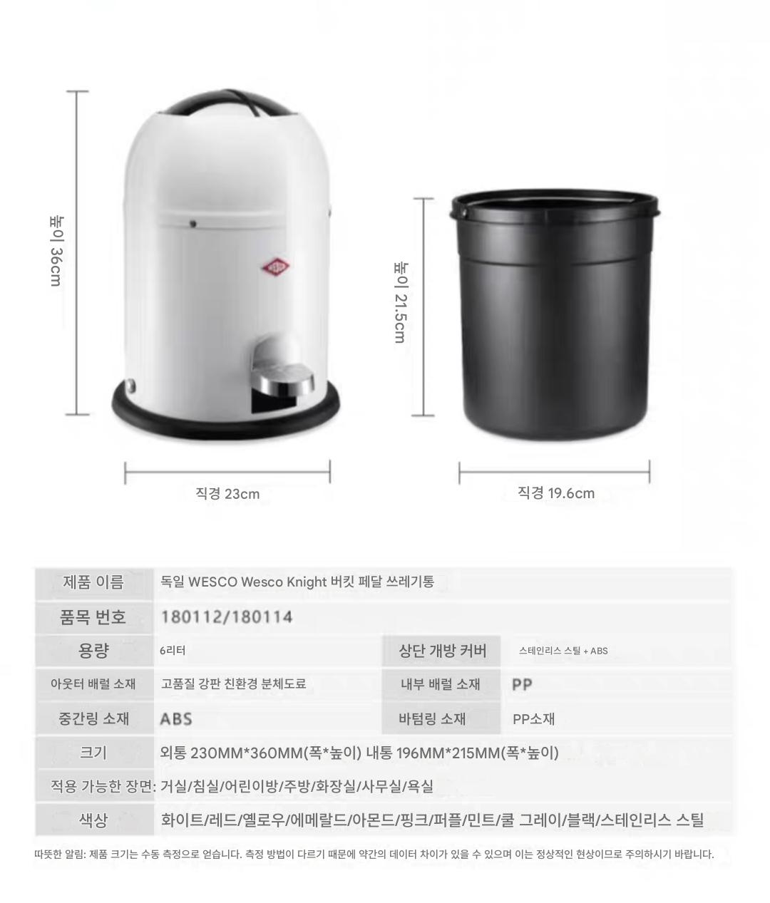 [공식인증] 독일 웨스코 거실 욕실 침실 가정 레트로 고가 수입 쓰레기통
