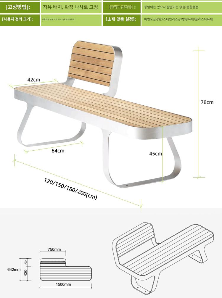 “공원 의자 야외용 견고한 나무 벤치 스테인리스 스틸 철제 롱 벤치 레저용 좌석 야외 야외 정원 의자”의 첫 상품평을 남겨 주세요