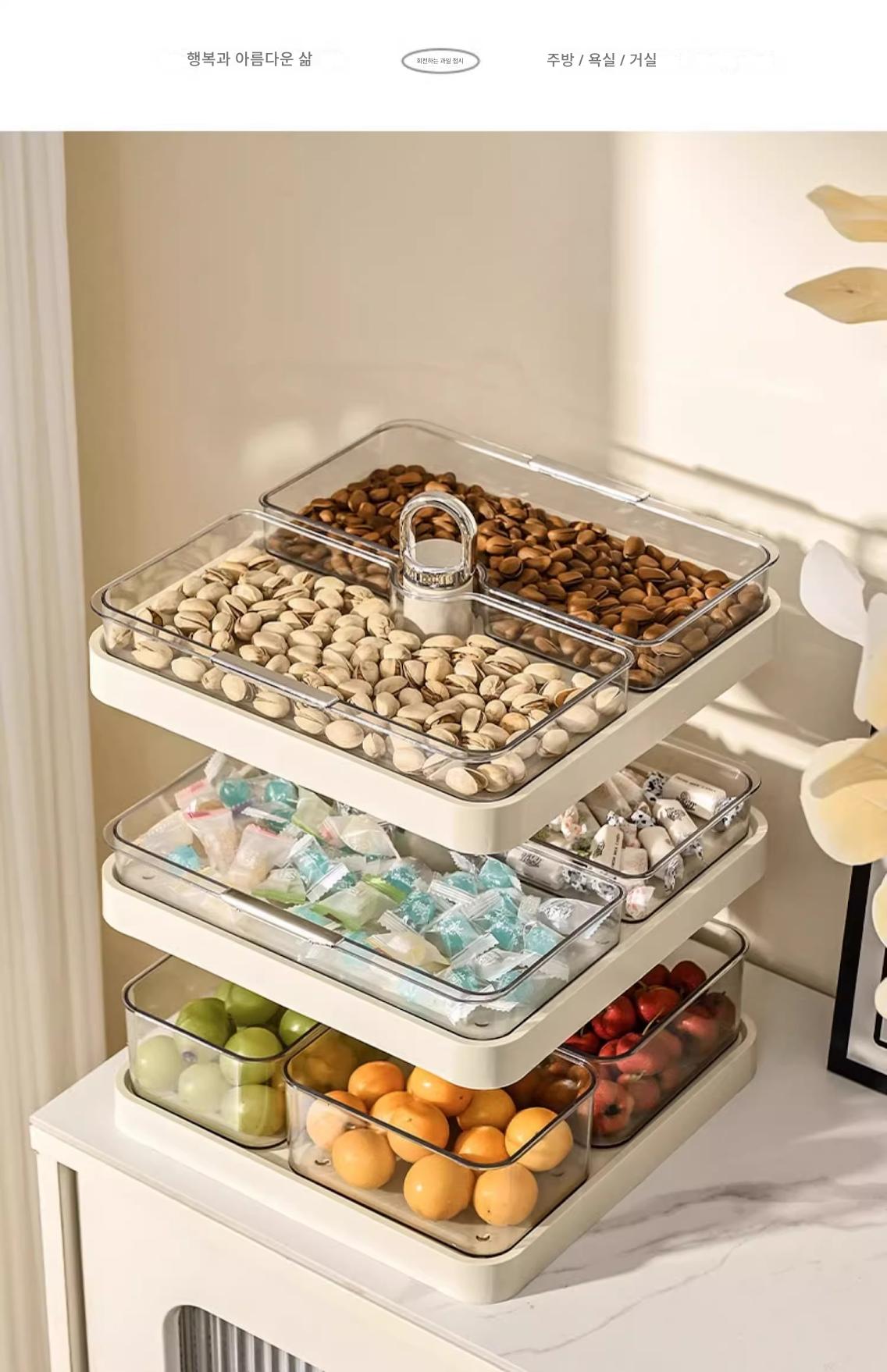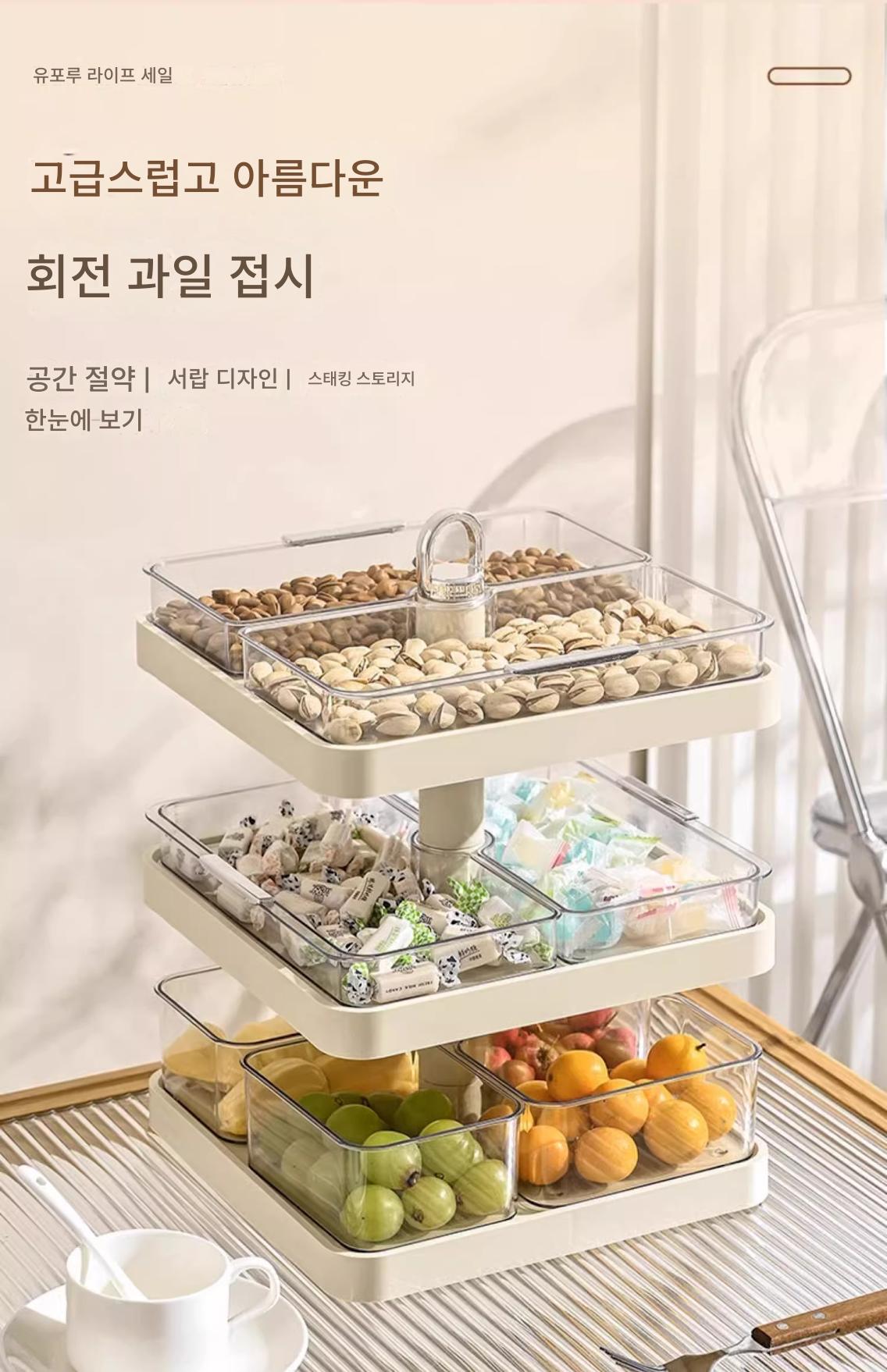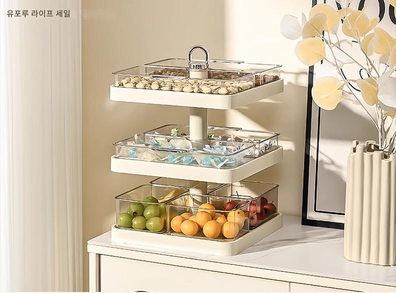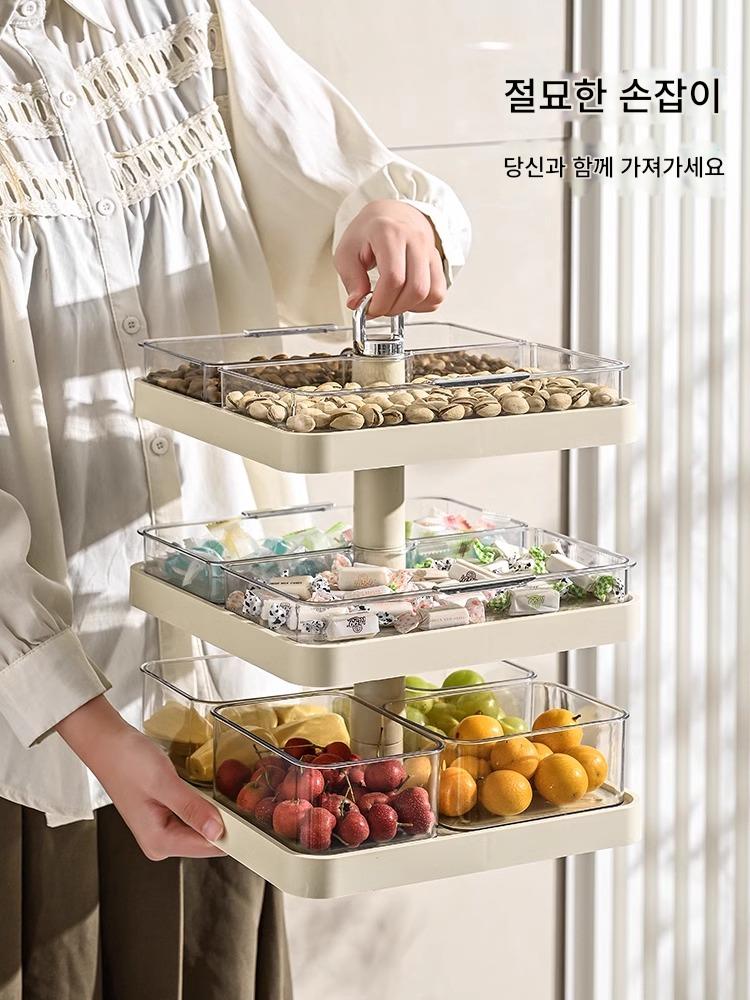과일 접시 홈 거실 커피 테이블 고급형 라이트 럭셔리 2024년 신제품 다층 과일 접시 멀티 그리드 회전 스낵 디스플레이 접시